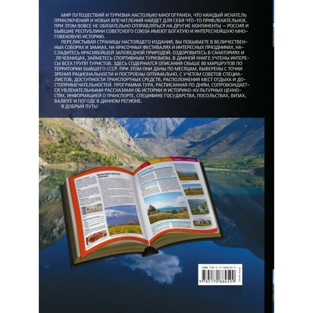 Перелистывая страницы настоящего издания, вы побываете в величественных соборах и замках, на красочных фестивалях и интересных праздниках, насладитесь красивейшей заповедной природой, оздоровитесь в санаториях и лечебницах, займетесь спортивным туризмом. В данной книге учтены интересы всех групп туристов. Здесь содержатся описания свыше 80 маршрутов по территории бывшего СССР. При этом они даны по месяцам, выверены с точки зрения рациональности и построены оптимально, с учетом советов специалистов, доступности транспортных средств, расположения мест отдыха и достопримечательностей. Программа тура, расписанная по дням, сопровождается увлекательными рассказами об истории и историко-культурных ценностях, информацией о транспорте, специфике государства, посольствах, визах, валюте и погоде в данном регионе.
