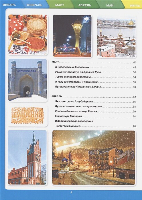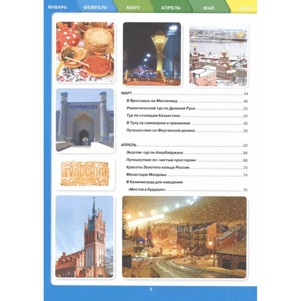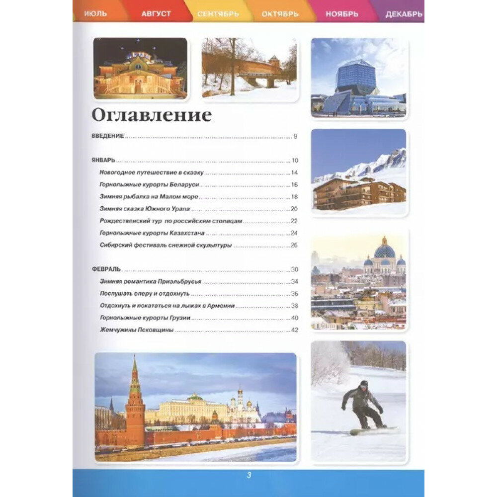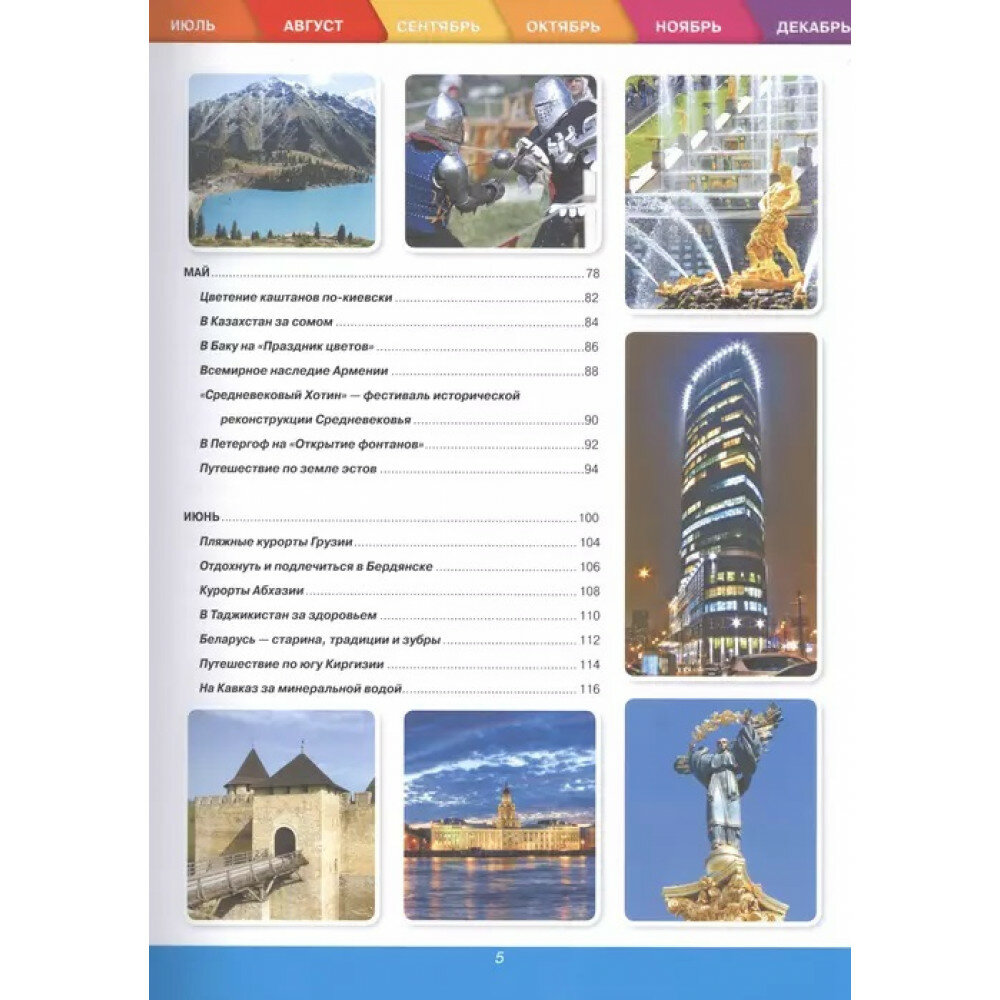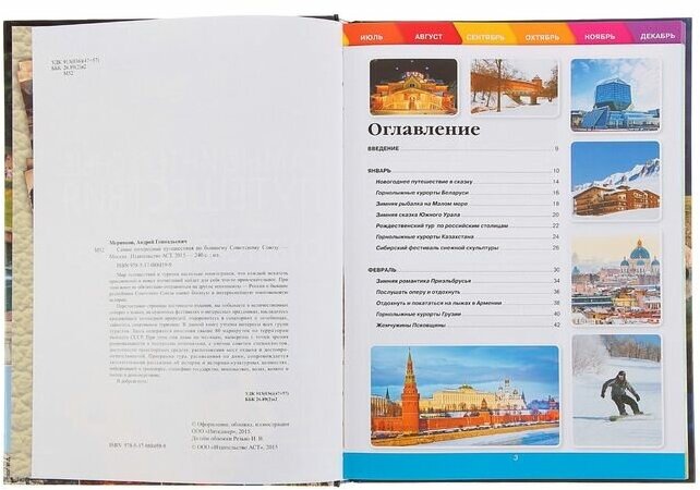 В этой книге включены самые красивые и исторические местоположения городов бывшего Советского союза. Самое интересное это то, что здесь даже они распределены по месяцам, то есть когда, куда можно ехать, по сезону то есть. Тут расписаны все курорты, все места где можно отдохнуть зимой и летом. Каждое место изображена в иллюстрациях, что очень интригует даже😍. Обложка твердая глянцевая.