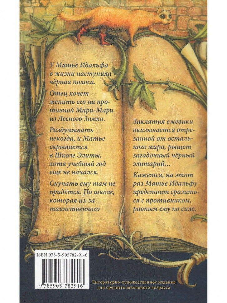 У Матье Идальфа в жизни наступила чёрная полоса. Отец хочет женить его на противной Мари-Мари из Лесного Замка. Раздумывать некогда, и Матье скрывается в Школе Элиты, хотя учебный год ещё не начался. Скучать ему там не придётся. По школе, которая из-за таинственного Заклятия ежевики оказывается отрезанной от остального мира, рыщет загадочный чёрный элитарий… Кажется, на этот раз Матье Идальфу предстоит сразиться с противником, равным ему по силе.