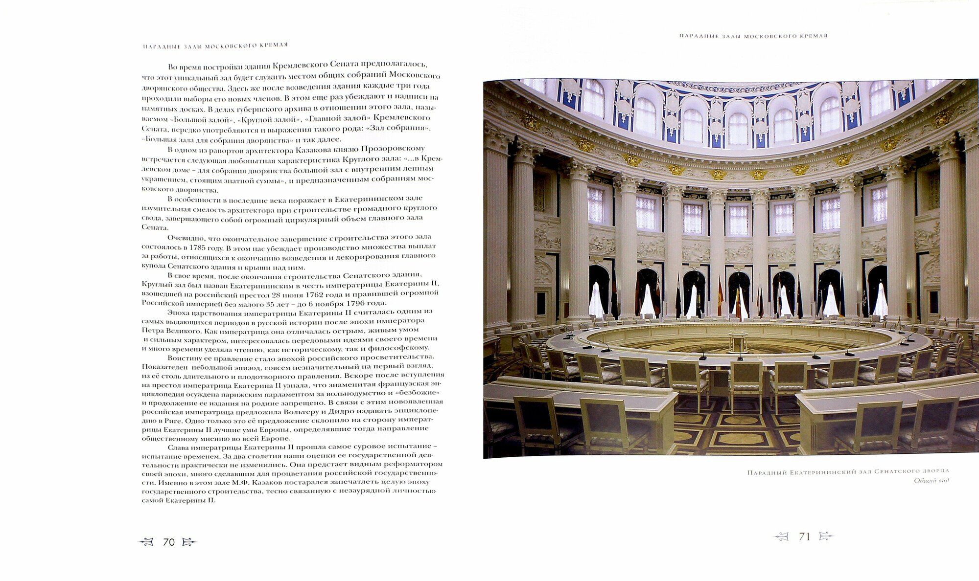 Книга отличная. Отличные иллюстрации (фото, репродукции). Расказывается о Грановитой палате, Золотой царицыной палате, Теремном дворце, Екатерининском зале,(Описаны барельефы зала), истории Большого Кремлевского дворца, парадный зал и вестибюль, Андреевском тронном зале, Александровском зале, Георгиевском зале,Владимирском зале, Екатерининском зале, Кавалергардском зале, Гостевой пристройке.