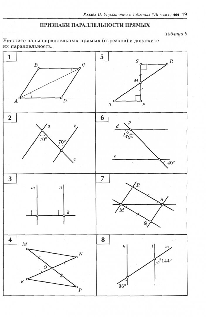 Предлагаемое вниманию читателя пособие содержит более 1000 разноуровневые задач и упражнений по основным темам программы геометрии (планиметрии) 7-9 классов, скомпонованных в 3 комплекта по готовым чертежам. 7 класс содержит 12 таблиц, 8 класс - 25, 9 -12 таблиц.