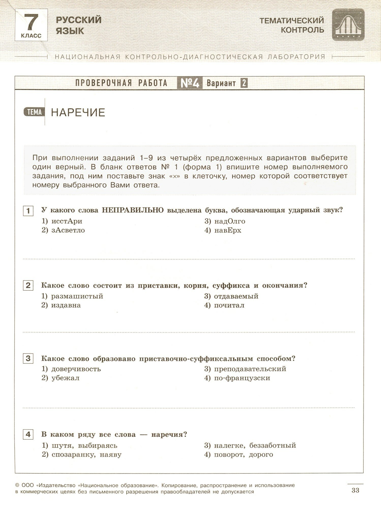 Русский язык. 7 класс. Тематический и итоговый контроль (Цыбулько Ирина Петровна, Александров Владимир Николаевич, Александрова Ольга Ивановна); Национальное образование, 2020