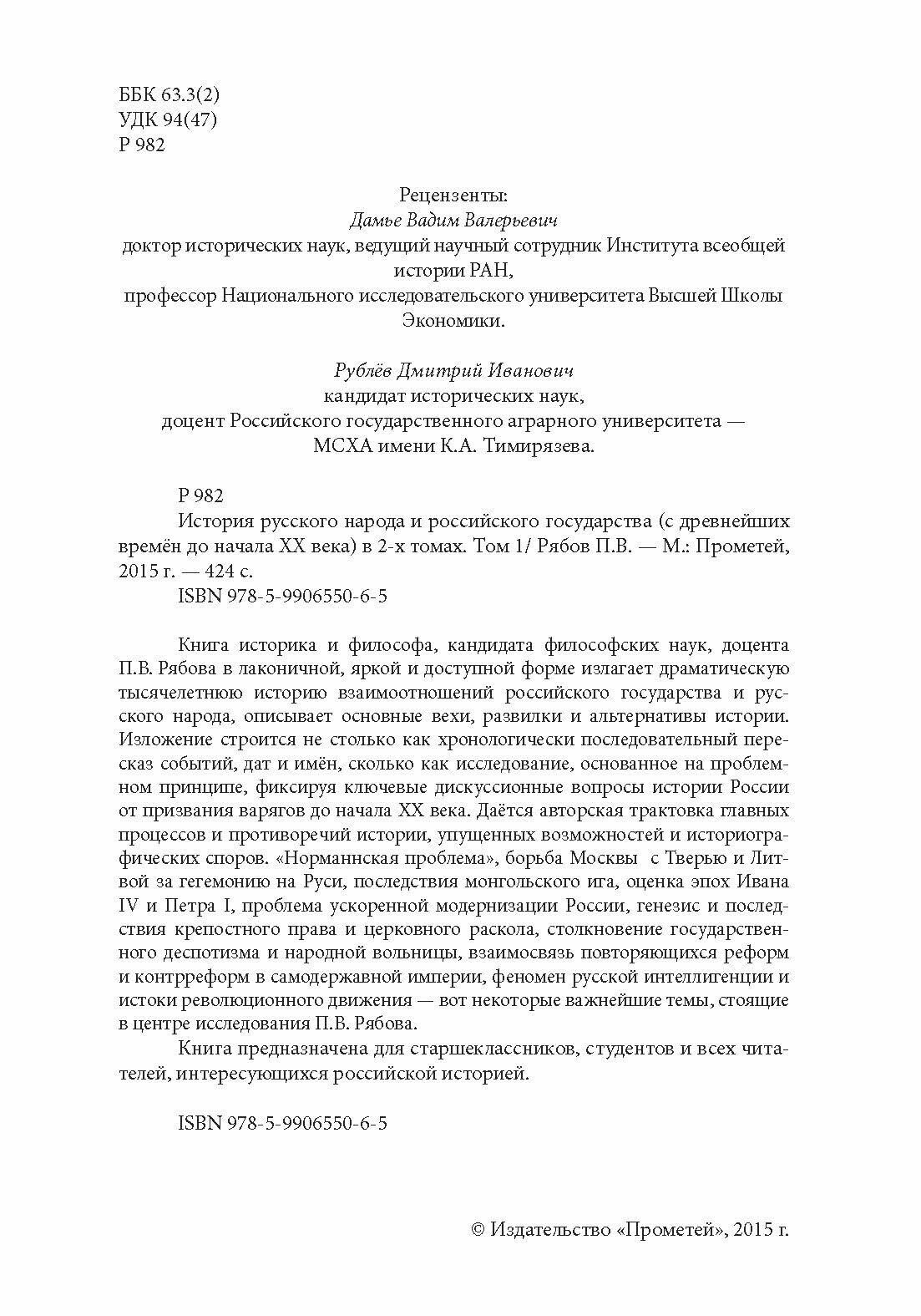 История русского народа и российского государства (с древнейших времен до начала ХХ в.). В 2-х томах (Петр Рябов); Прометей, 2015