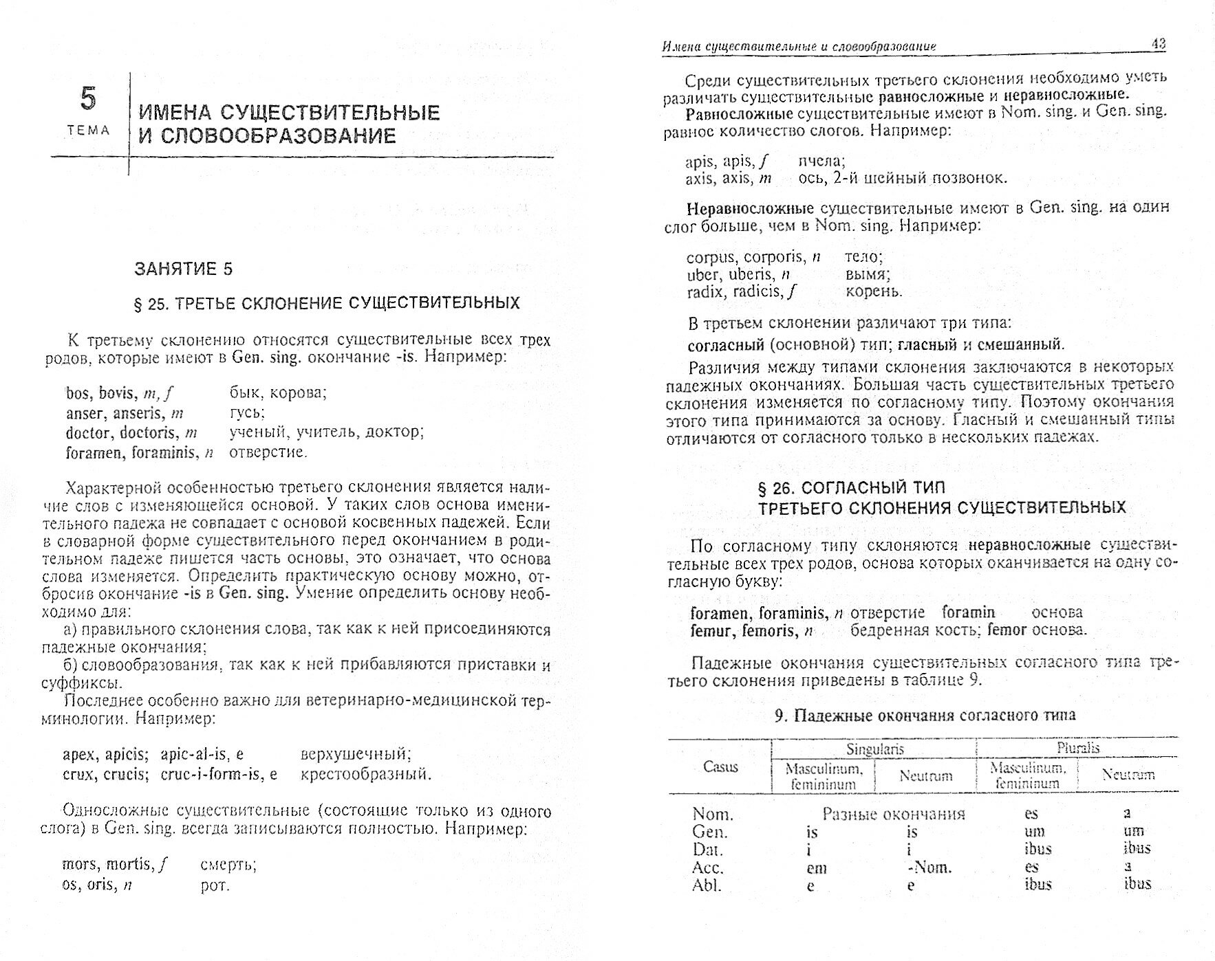 Приведен латинский алфавит, сформулированы правила произношения и ударения. Рассмотрены спряжения латинских глаголов и дана система латинских склонений именных частей речи. Описаны имя существительное, имя прилагательное, местоимения, числительные, наречия и показано их употребление в рецептах. Даны примеры составления рецептов. Приведен словарь основных ветеринарных терминов.