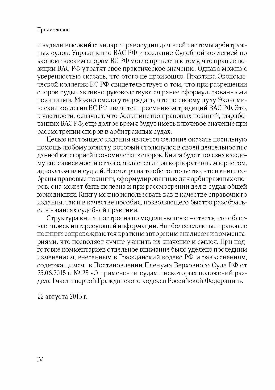 Несмотря на то, что в книге собраны правовые позиции, сформулированные для арбитражных споров, она будет полезна и при рассмотрении дел в судах общей юрисдикции. Книгу можно использовать как в качестве справочного издания, так и в качестве пособия, позволяющего быстро разобраться в нюансах судебной практики.