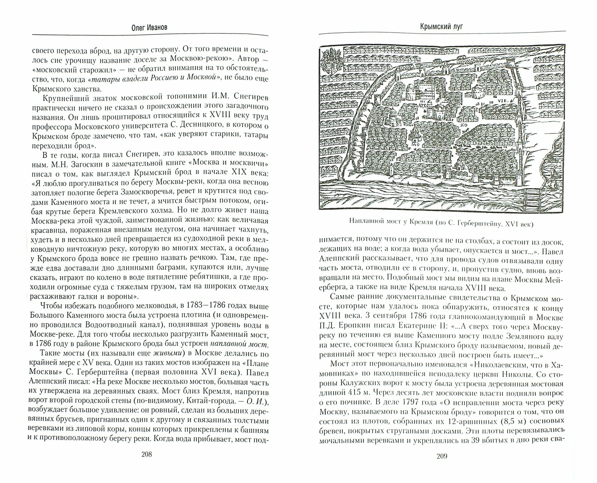 Представленный путеводитель разбит на три части: "Крымский луг", "Нескучный сад", "Воробьевы горы", которые отражают некоторое сложившееся в сознании горожан, а также и юридически деление упомянутой в заглавии территории.