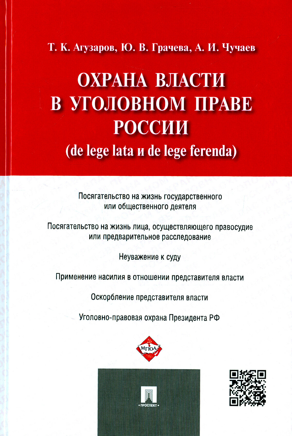 Охрана власти в уголовном праве России (de lege lata и de lege ferenda) (Агузаров Тамерлан Кимович; Грачева Юлия Викторовна; Чучаев Александр Иванович); Проспект, 2016