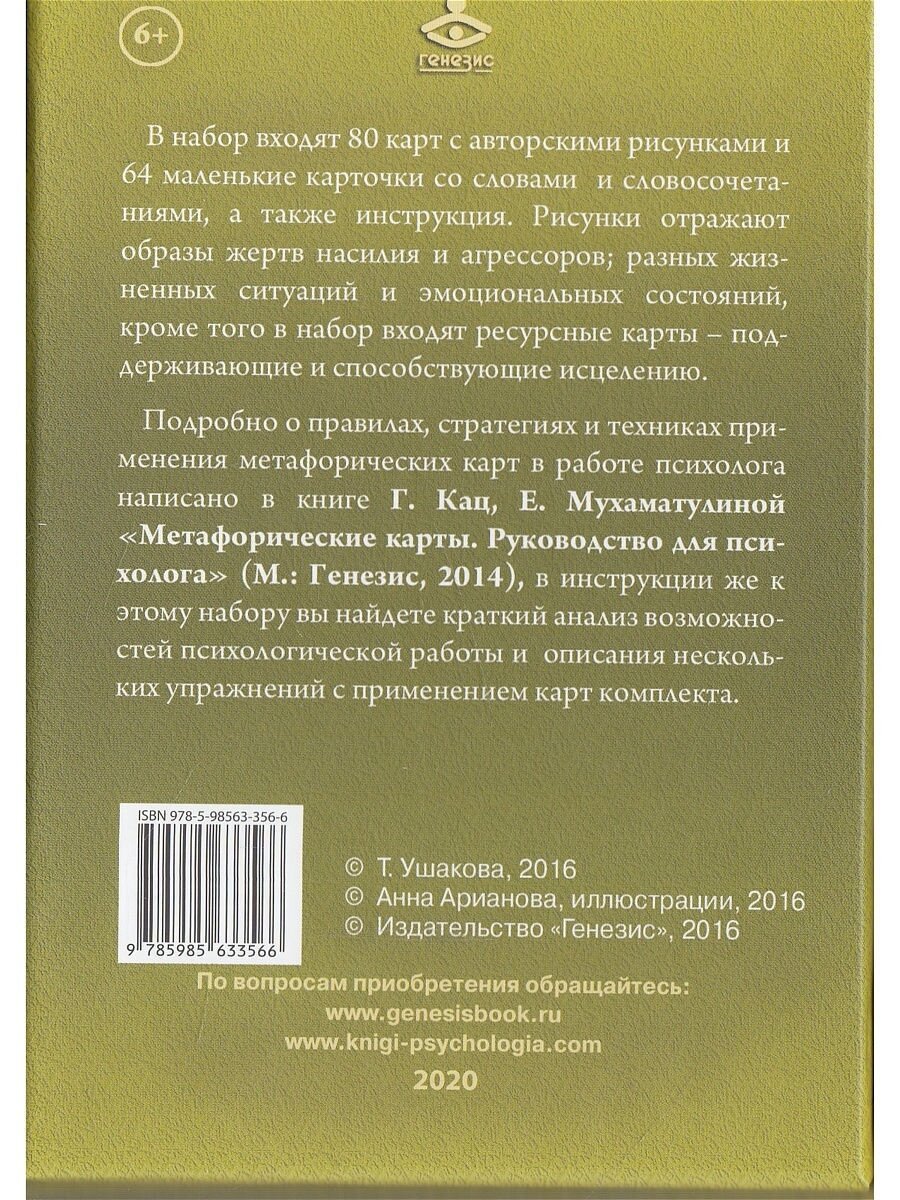 Приобрела и с удовольствием начала работать с этой колодой. Все рисунки выполнены в ярких и четких цветах, с полутонами и игрой с тенью, на плотном картоне. Колода хорошо подходит для работы не только со взрослыми, но и с подростками. Удобно использовать как "входные ворота" для обсуждения сложных тем - то, что бывает трудно, а подросткам - часто невозможно вербализовать, очень удобно показать на карточках. Надо иметь в виду, что большая часть карточек - негативного содержания.