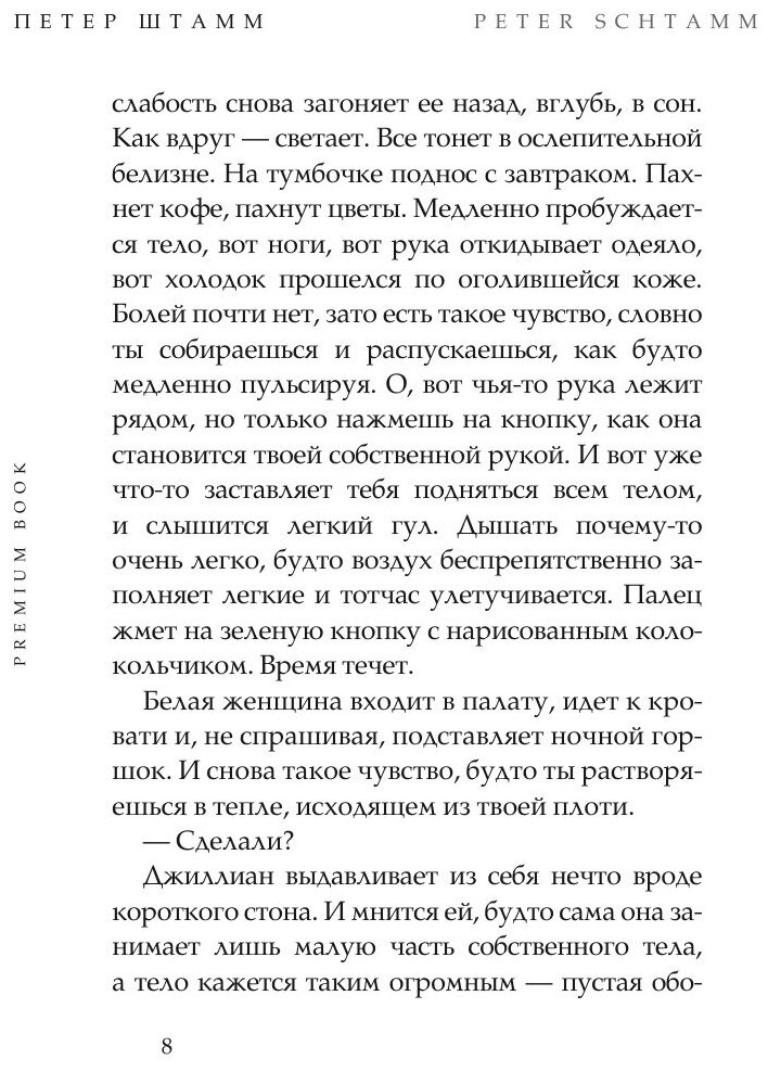 Новая книга известного швейцарского писателя Петера Штамма - образец классического современного романа. Краткость, легкий и в то же время насыщенный эмоциями сюжет - вот что создает основной букет этого произведения, оставляя у читателя необычное, волнительное послевкусие...