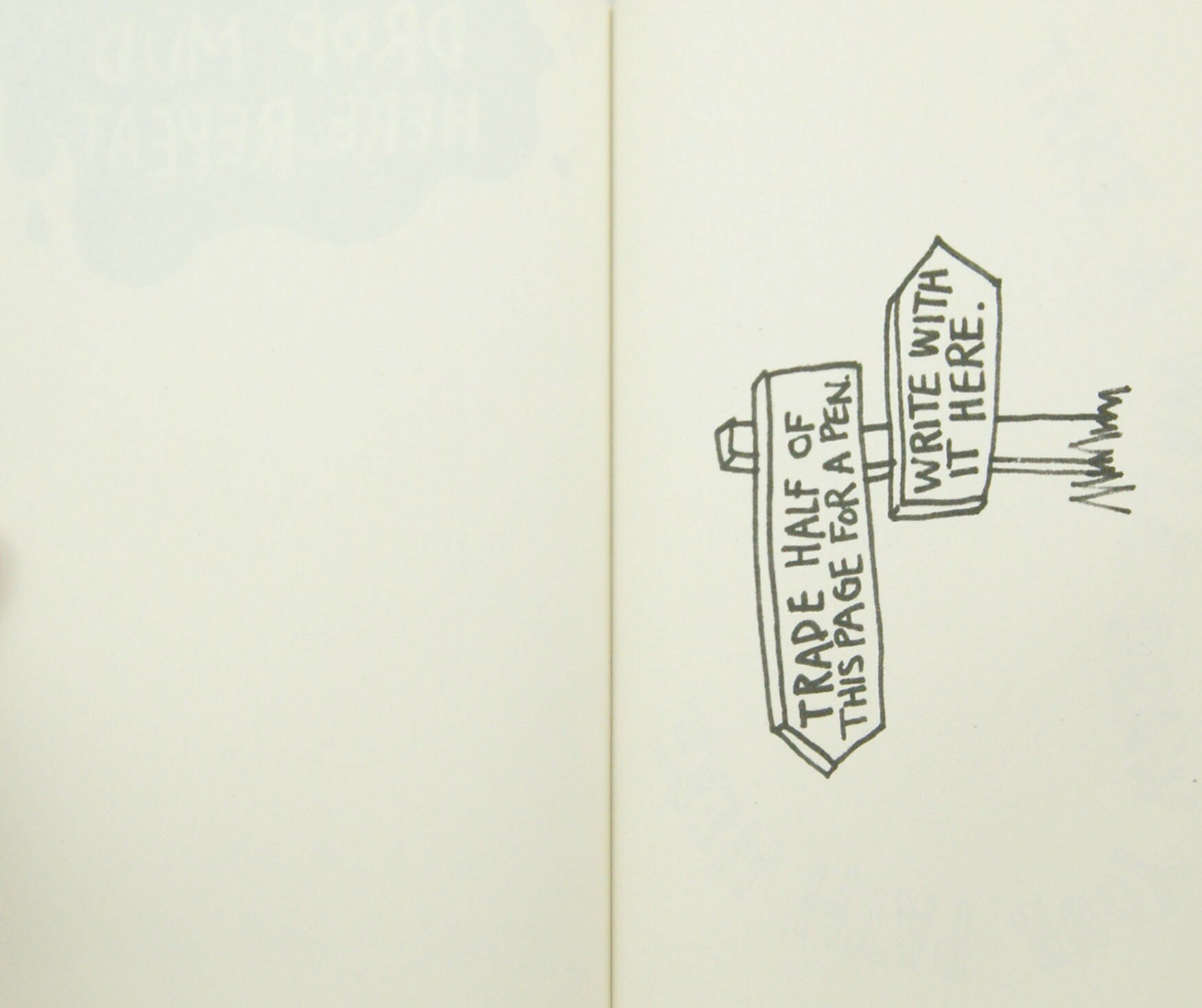 Блокнот небольшой (чуть больше фермата А5), влезет в практически любую сумочку/рюкзак и т. п.. Подразумелось, что задания будут выполняться вне дома, например, в кафе или парке. Поэтому в этом блокноте появились новые задания, специально адаптированные для выполнения на улице. Так же в блокноте несколько раз встречалоется задание "Придумай свой способ уничтожения".