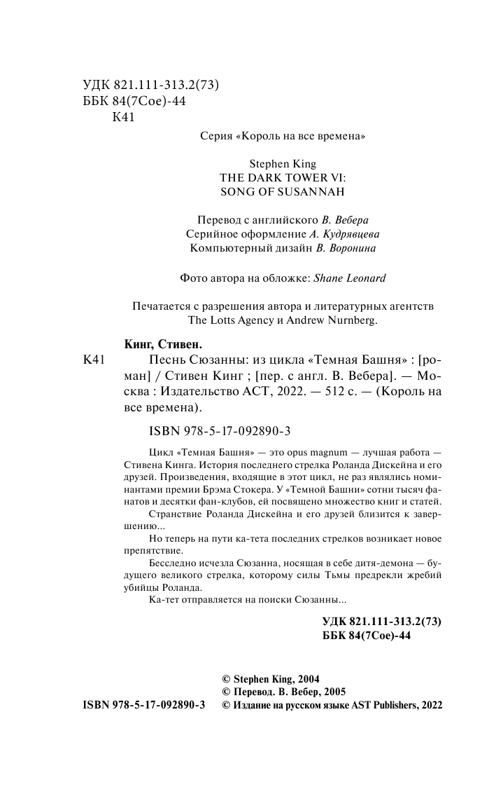 Песнь Сюзанны: из цикла "Темная Башня" (Кинг Стивен); ООО "Издательство Астрель", 2020