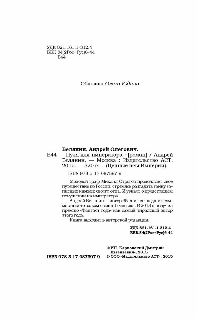 Книга: Пуля для императора (Андрей Белянин); Автор, 2015