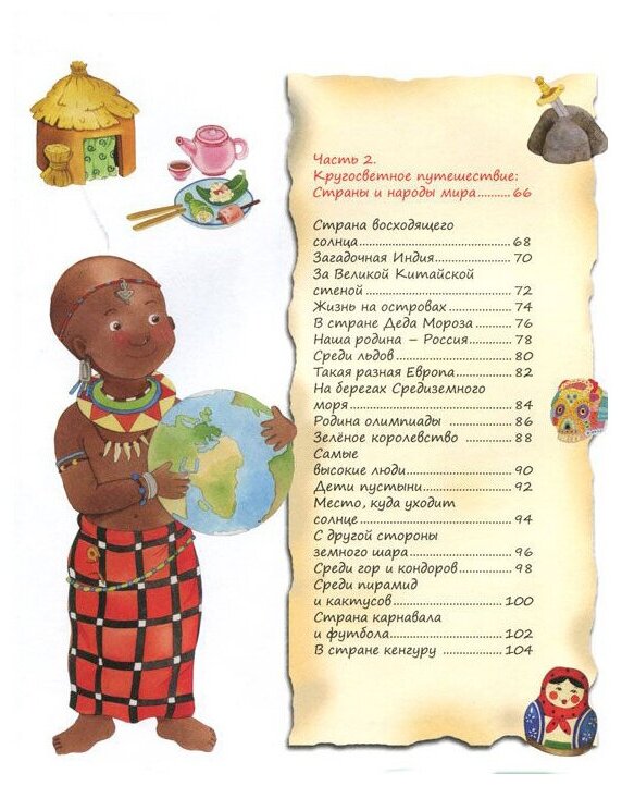 Эту книгу подарили моему сыну 3,5 года. Рассматривали ее с большим интересом 3-мя поколениями (сын, я и бабушка). Отдельное спасибо художнику за прорисованные сюжетные картинки: корабли, пляжи, замки, дома. Сын - любознайка, увлекся. На мой взгляд, эту книгу можно брать для рассматривания и на более ранний возраст (от 2-х лет) и постепенно изучать и рассказывать ребенку более сложные явления и вещи. Информации в ней немного, изложена легко, понятно и, главное, интересно для малышей дошкольного возраста. Мы пока читаем немного, больше рассказываю своими словами и рассматриваем. Единственный минус книги - ее уклон на Европу и Америку. И если в разделах по истории, про животных и растениях - это на так критично. То в разделе профессий - бьет по глазам присутствие темнокожей учительницы с косичками на голове и явно не российского образца одежда и транспорт спецслужб! Хотя моему сыну было очень интересно: почему учительница так выглядит (расширили кругозор :))) В целом я очень довольна книгой. Влюбилась просто в иллюстрации художника. Рекомендую именно малышам от 2,5 - 3-х лет (в зависимости от вашего развития).