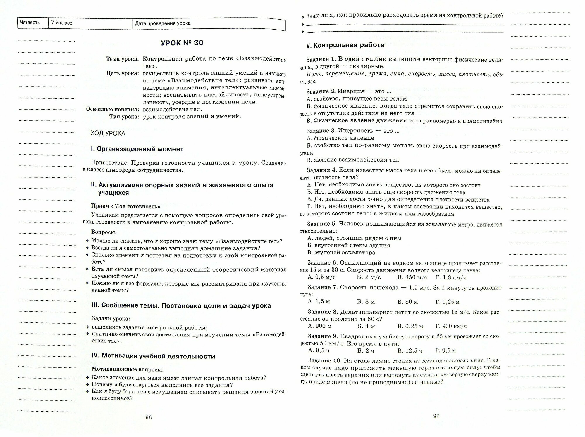 В данном пособии представлены разработки планов-конспектов уроков курса «Физика» для учеников 7 класса, предложено календарно-тематическое планирование. Также предусмотрено место для собственных записей учителя, что сделает разработку занятия по-настоящему авторской, но сэкономит время для планирования и оформления.