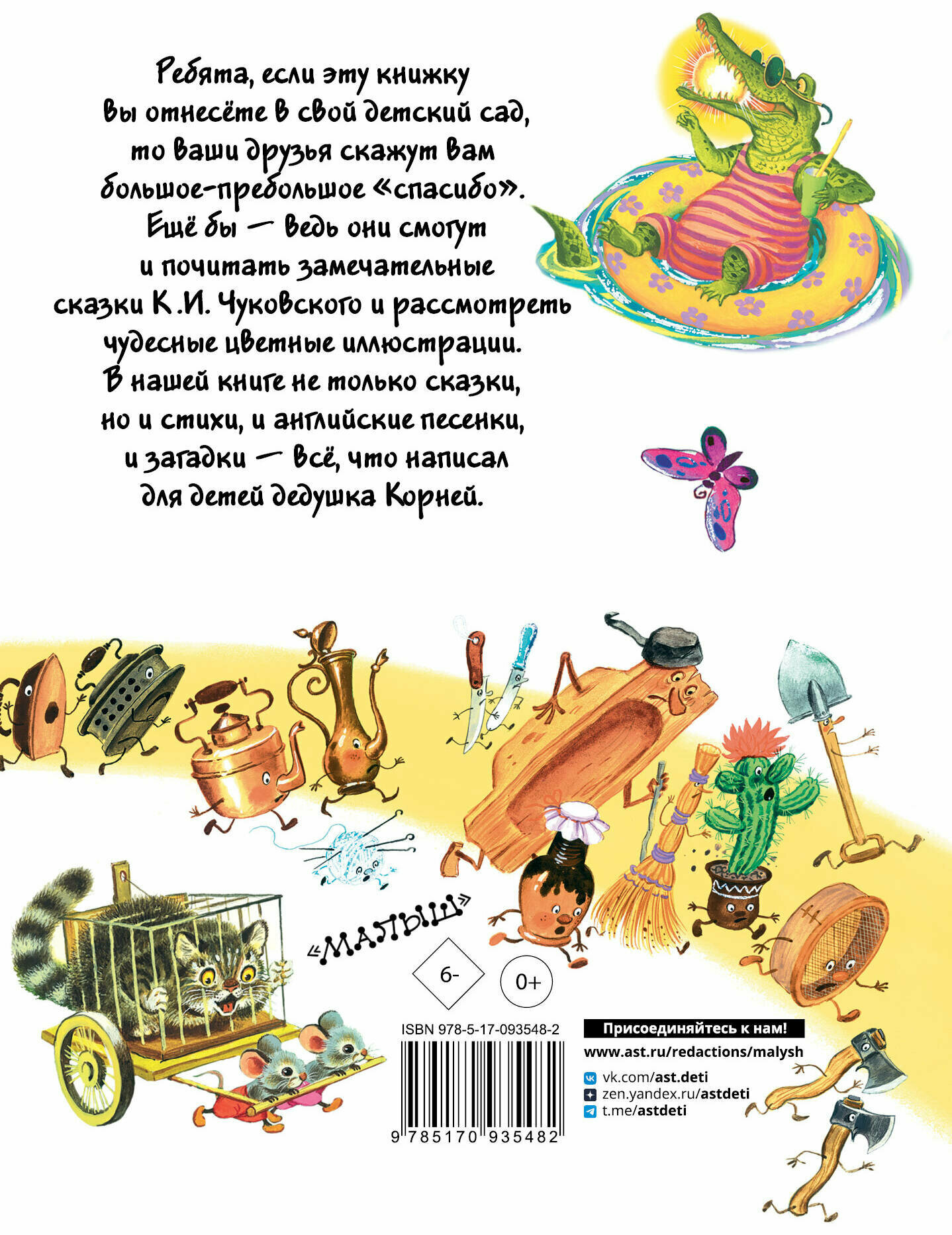 Ребята, если эту книжку вы отнесёте в свой детский сад, то ваши друзья скажут вам большое-пребольшое "спасибо". Ещё бы - ведь они смогут почитать замечательные сказки К.И. Чуковского и рассмотреть чудесные цветные иллюстрации. В нашей книге не только сказки, но и стихи, и английские песенки, и загадки - всё, что написал для детей дедушка Корней.