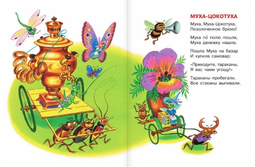 Книга отличная! Удобный формат. Яркие, красочные иллюстрации из моего детства нарисованы, а не сделаны в фотошопе, как это часто бывает. Долго не могла подобрать ребенку книгу, которая бы заинтересовала (дочке 2г 6мес). Купила из-за Мойдодыра и Мухи-цокотохи, т.к часто цитирую эти произведения, а дочка повторяет. Теперь с удовольствием читаем Айболита и Бармалея, а Акула-Каракула - наш любимый персонаж. Рекомендую к покупке!