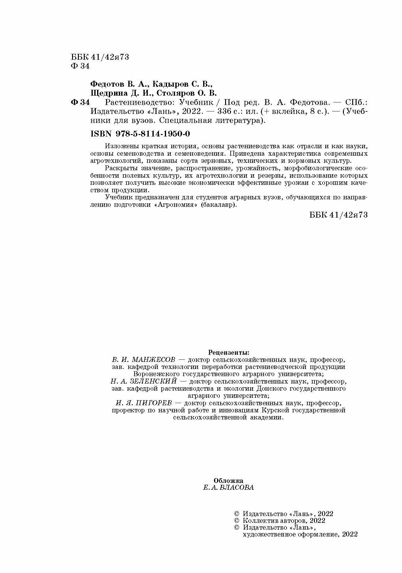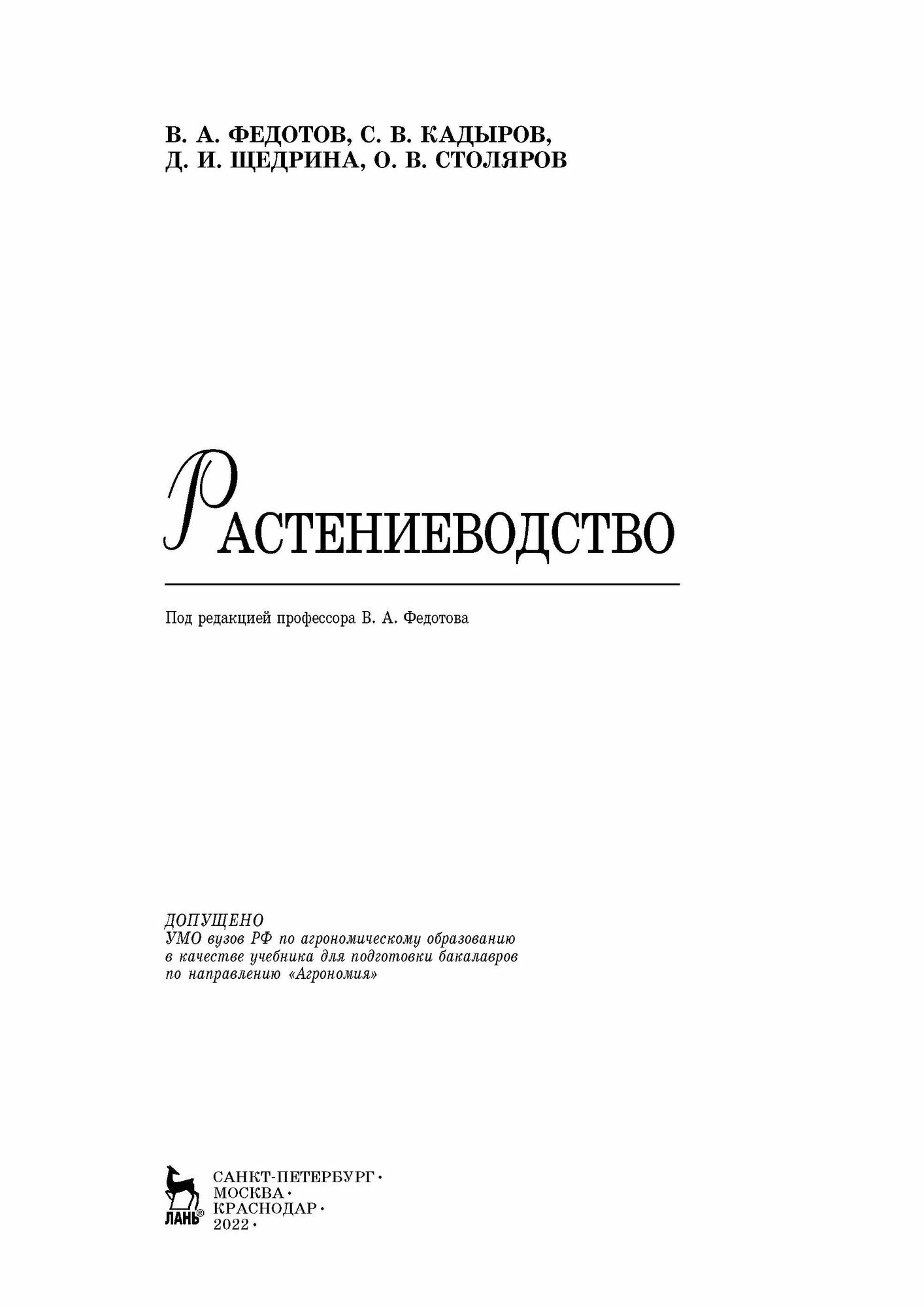 Книга: Растениеводство. Учебник (Федотов Василий Антонович, Кадыров Сабир Вагидович, Щедрина Диана Ивановна); Лань, 2015