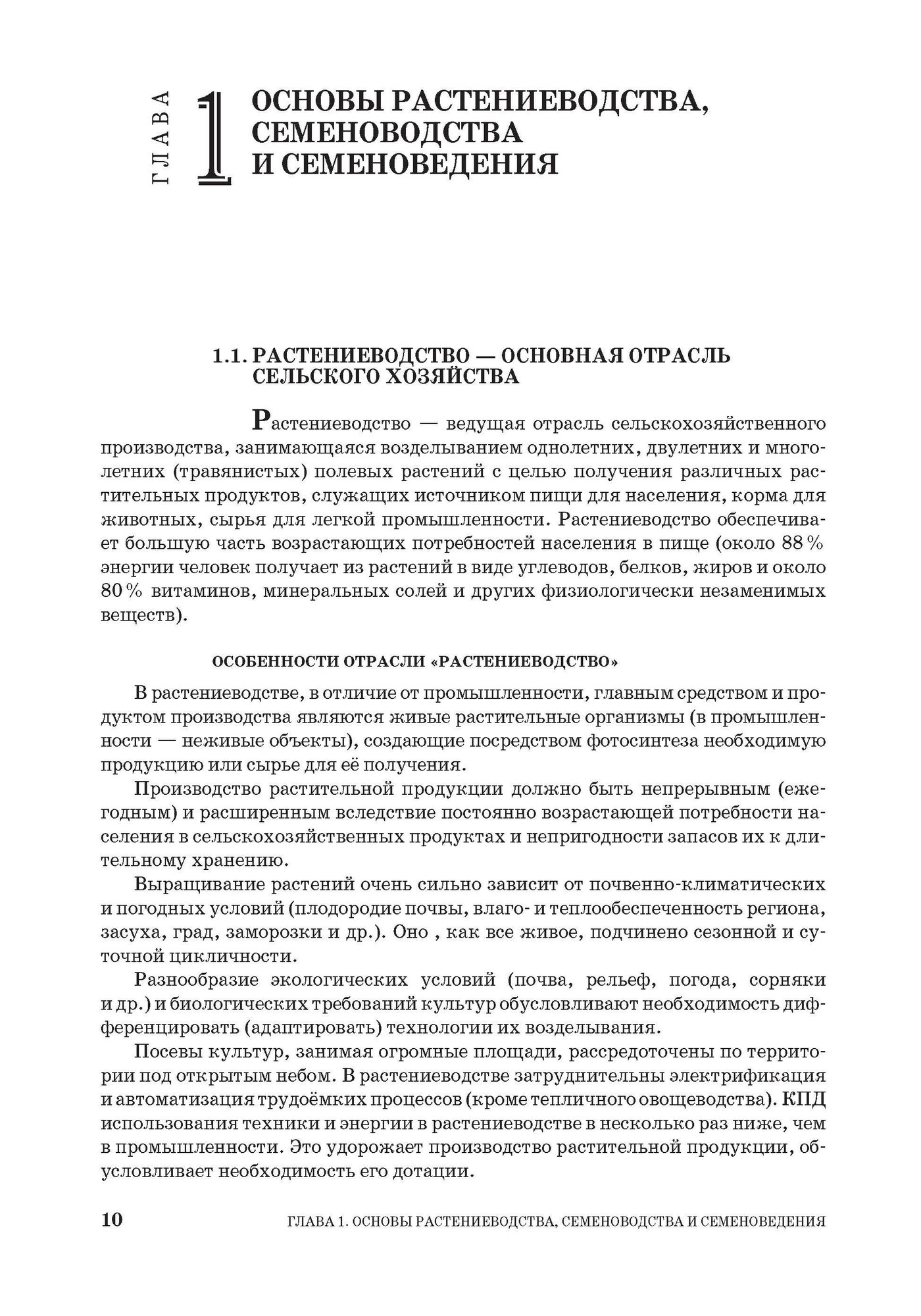 Изложены краткая история, основы растениеводства как отрасли и как науки, основы семеноводства и семеноведения. Приведена характеристика современных агротехнологий, показаны сорта зерновых, технических и кормовых культур. Раскрыты значение, распространение, урожайность, морфобиологические особенности полевых культур, их агротехнологии и резервы, использование которых позволяет получить высокие экономически эффективные урожаи с хорошим качеством продукции. Учебник предназначен для студентов аграрных вузов, обучающихся по направлению подготовки "Агрономия" (бакалавр).