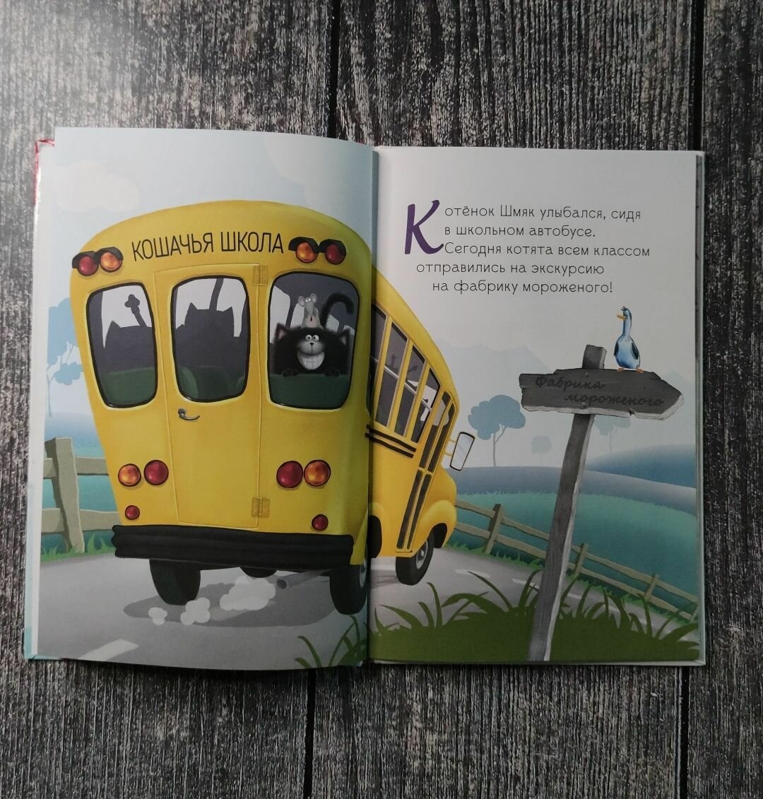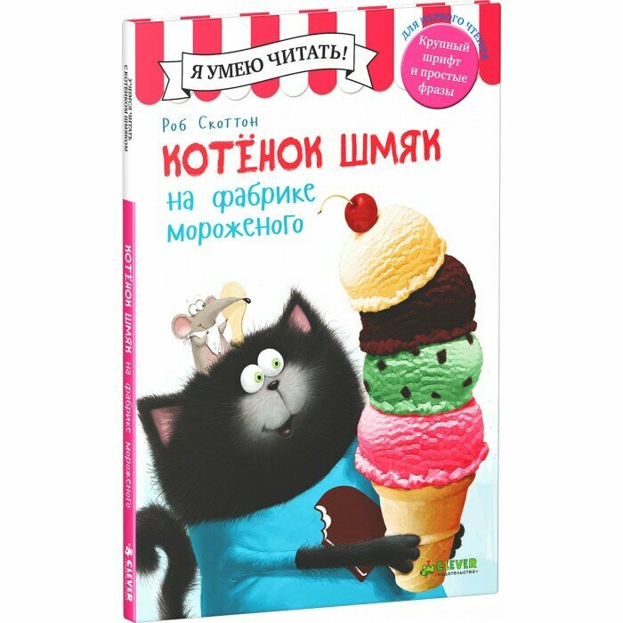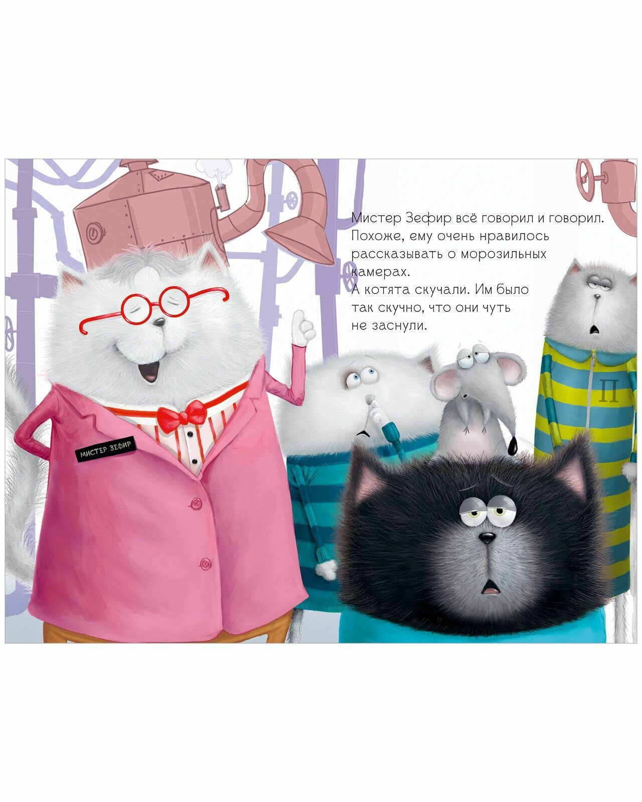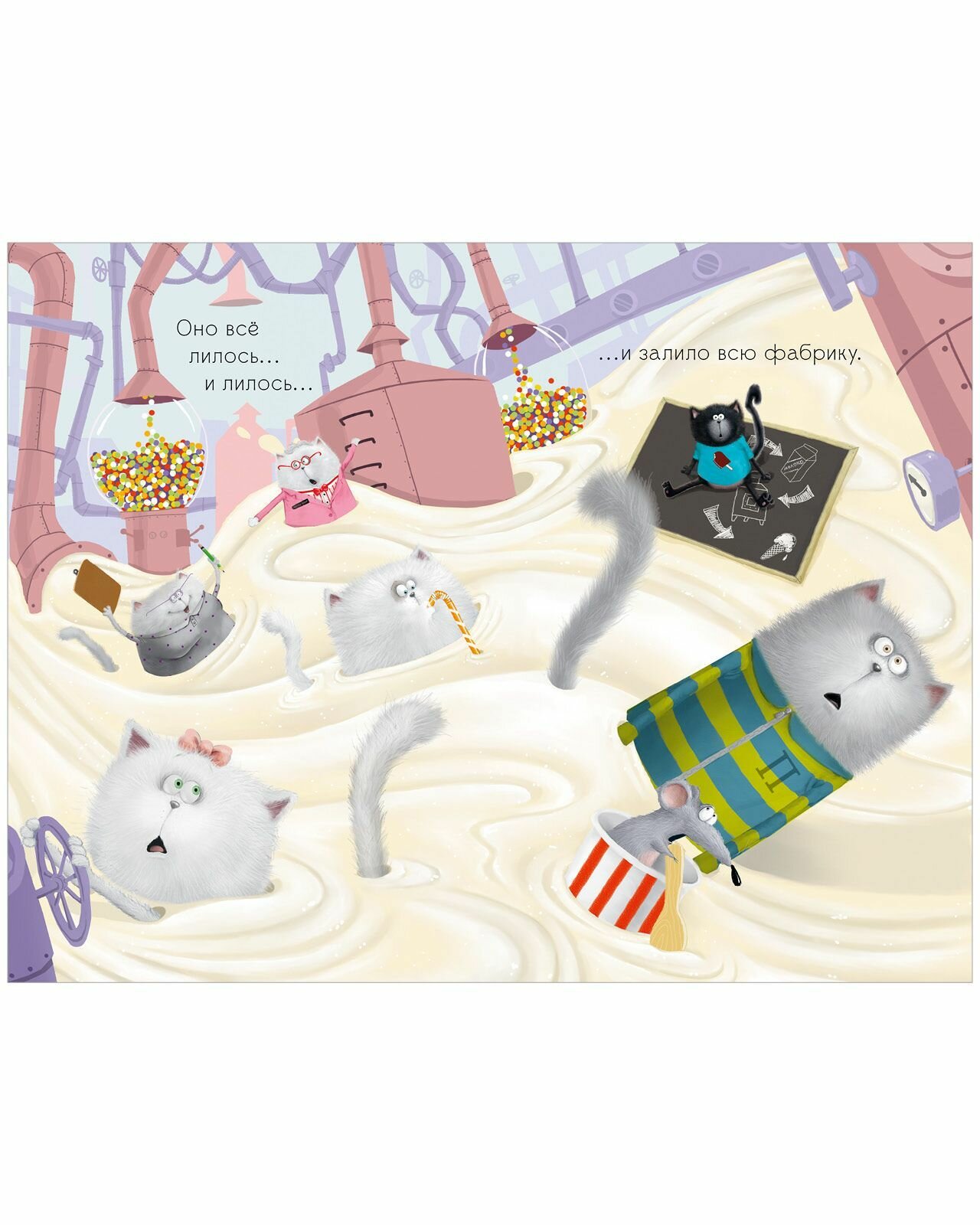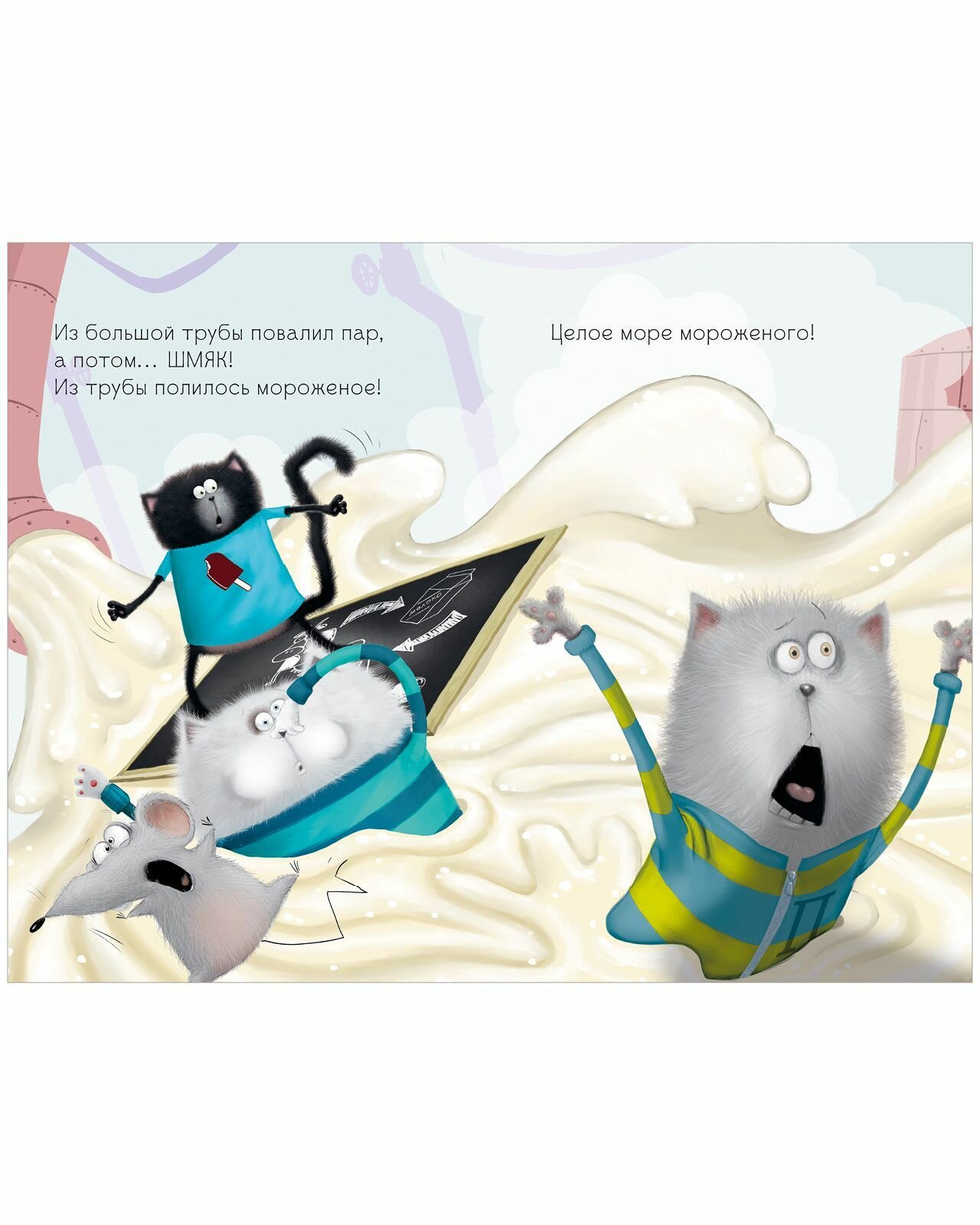 Любимая книга моего сына. Из всей серии книжек про Шмяка ему больше всего нравится именно она. Не удивительно, ведь в этой книге котята с миссис Пухлисс отправляются на фабрику мороженого к мистеру Зефиру. Котят ждет море мороженого, целые горы шоколадной крошки и незабываемое приключение. Главные достоинства этой книги — доступный и понятный 4 — 8 летнему ребенку текст, обилие забавных котиков, интересный сюжет и простые фразы.