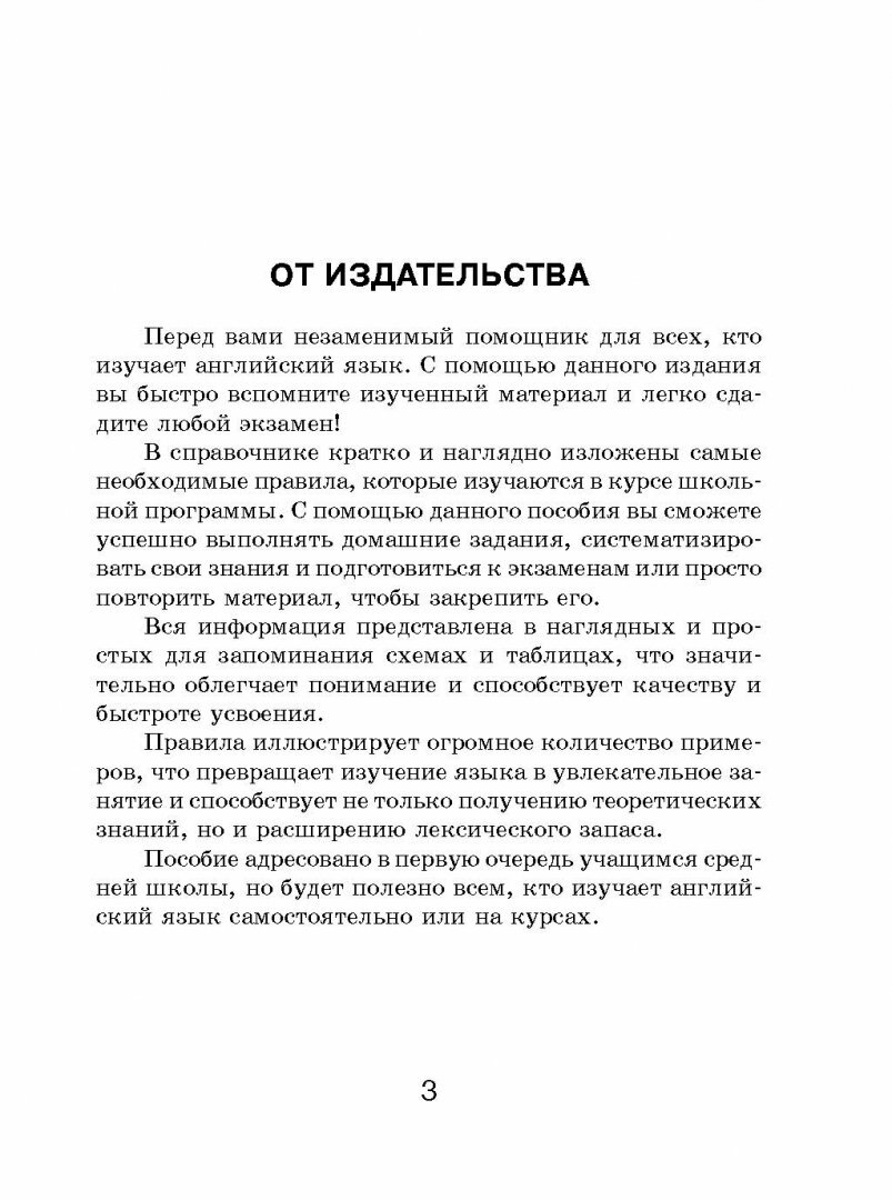 Справочник поможет правильно строить английские предложения и выполнять упражнения и домашние задания, а также облегчит подготовку к экзаменам.