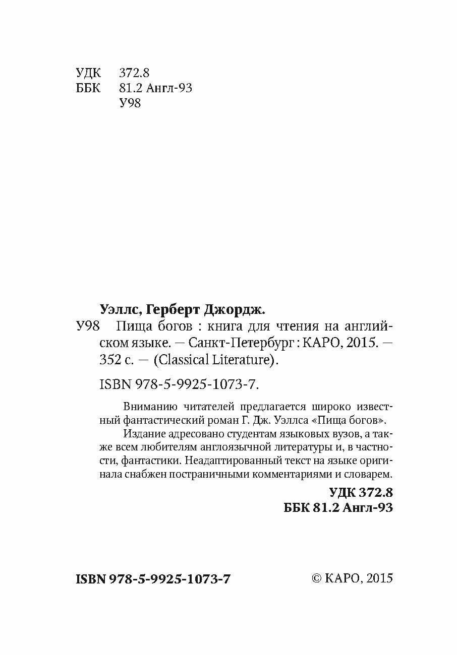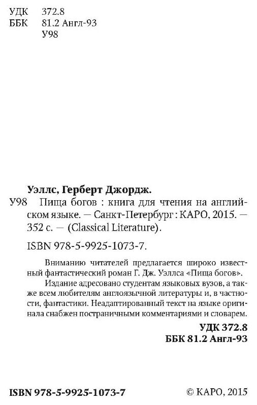 Сервис сравнения цен СкидкаГИД предлагает сравнить цены на товар «Книга: Пища богов= The food of the gods: книга для чтения на английском языке (Герберт Джордж Уэллс); КАРО, 1904»