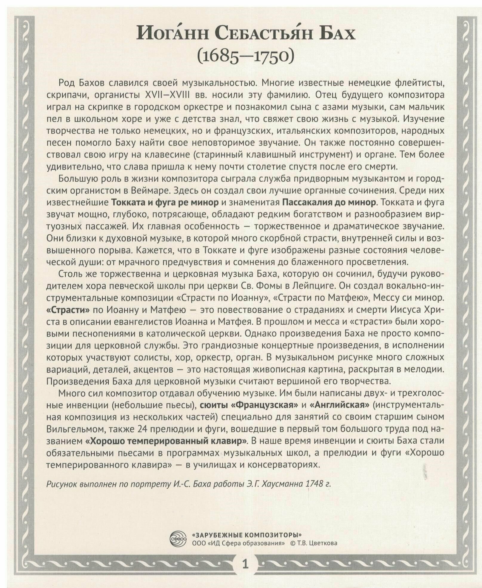 Комплект демонстрационных материалов "Зарубежные композиторы" посвящен классикам европейской музыки, с творчеством которых ребенок знакомится в детском саду и школе. Пособие содержит: интересные биографические факты; краткий обзор творчества композиторов; рассказ о наиболее значимых музыкальных произведениях. Знания даются сжато, но в достаточном для ребенка объеме. Работа с материалами поможет детям расширить кругозор, познакомиться с зарубежной музыкальной культурой, пополнить активный словарь, развить образную речь и зрительную память. Пособие призвано усилить впечатление от прослушанных на занятиях музыкальных произведений, вовлечь детей в прекрасный мир классической музыки. Портреты композиторов проиллюстрируют рассказ. Рекомендуем использовать их для постоянной или временной экспозиции в группе и классе. Пособие создано для занятий с детьми 6-11 лет, более старшие дети и взрослые могут самостоятельно познакомиться с материалами данного пособия. Подходит для индивидуальной и групповой работы.