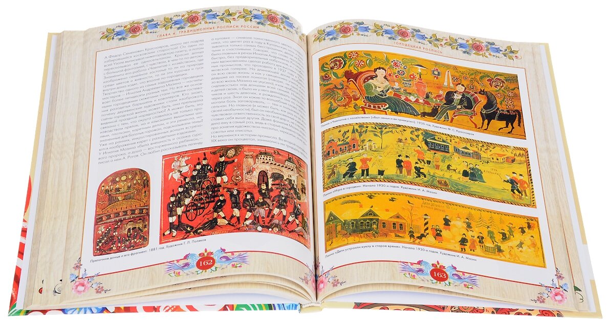 Сбылась моя мечта! купила я эту чудесную книгу! в ней так подробно все описано и какие кисти нужны для какой работы( покрывать одним цветом работу, расписывать) и какие краски и цветовая палитра и смешивание цветов и про композицию и про смысл самих узоров. Это больше похоже не на энциклопедию, а на учебник)) росписей представлено только 4 Пермогорская, Мезенская, Хохломская и Городецкая.. не хватает конечно для полного счастья Гжели, Дымки и т.д.. но тогда это будет уже другой объем книги и другая цена.. Подождем, может Автор подготовит еще одну книгу с другими традиционными росписями России - а их еще очень много)))