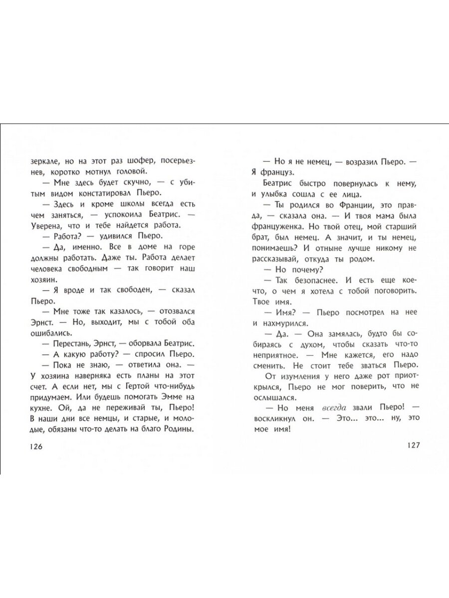 Новый роман автора "Мальчика в полосатой пижаме". Его можно назвать в определенной степени продолжением, хотя герои совсем иные. Но тема и интонация очень близкие. В Париже живет обычный мальчик Пьеро. Мама у него француженка, а папа - немец. Папа прошел через Первую Мировую, где был навсегда травмирован душевно. И хотя дома у Пьеро не все ладно, он счастлив. Родители его обожают, у него есть лучший друг Аншель, с которым он общается на языке жестов, а еще есть любимый песик Д'Артаньян. Но этому уютному миру жить осталось совсем недолго. На дворе вторая половина 1930-х. И вскоре Пьеро осиротеет, его отправят в приют, а оттуда мальчика заберет его тетушка, сестра отца, служащая экономкой в одном богатом доме. И он уедет в Австрию, в прекрасные Альпы, в чудесный дом на вершине горы, откуда открывается сумасшедший вид. Пьеро теперь будут зваться Петер, и у него появится новый взрослый друг. У нового друга черные усы щеточкой, прекрасная дама по имени Ева и умнейшая немецкая овчарка по кличке Блонди. И зовут его Фюрер. Он добрый, умный и очень энергичный. Только почему-то прислуга до смерти боится Фюрера, а гости, бывающие в доме на горе, ведут разговоры о величии Германии и том, что всей Европе настала пора узнать об этом. Так начинается трансформация Пьеро в Петера.