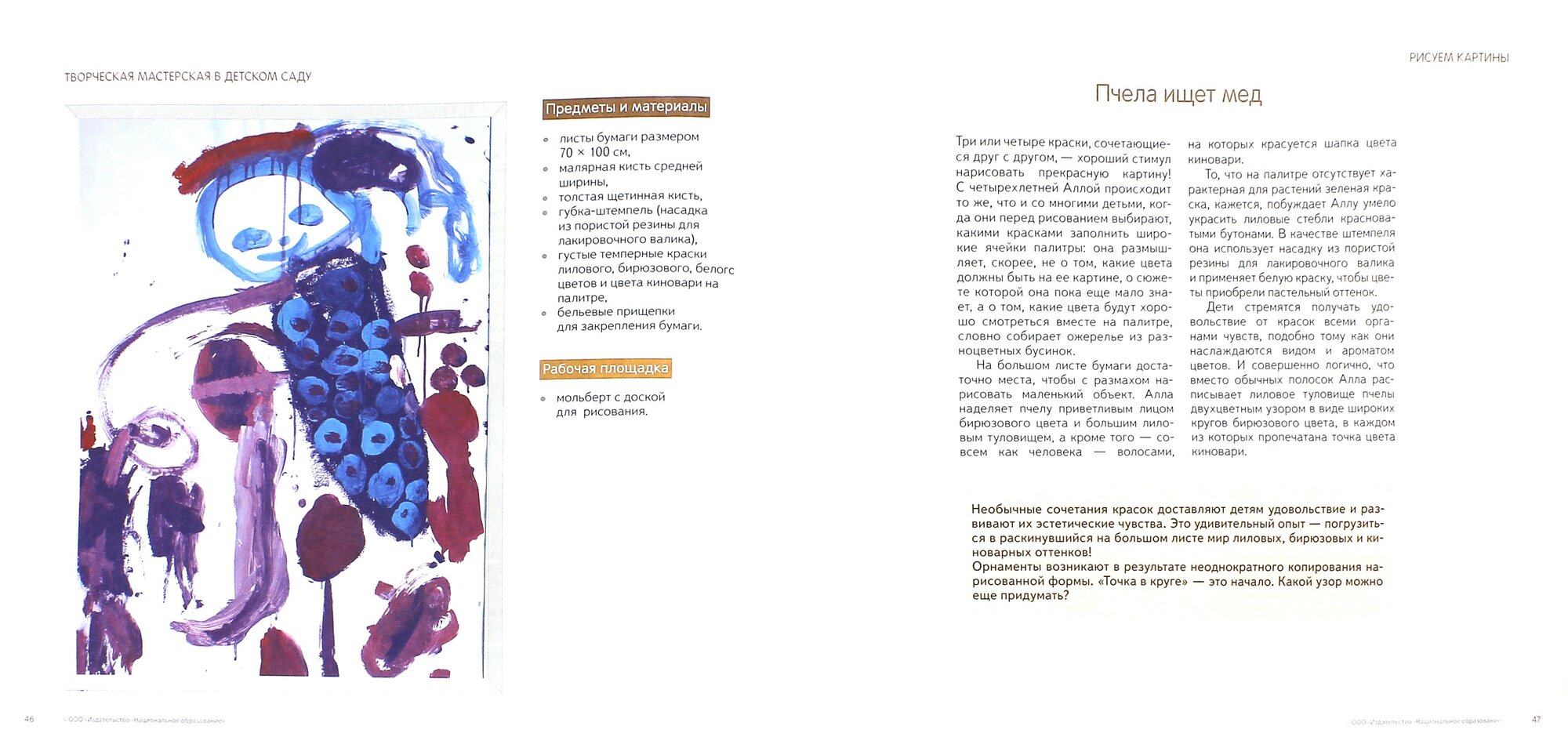 Книга отличается от подобных пособий с творческими мастер-классами и идеями. В ней довольно много внимания уделяется определению понятия мастерской как пространству для реализации огромного творческого потенциала деток, дается много ценных советов и правил оформления этого пространства с учетом потребностей именно ребенка, а также поясняется роль педагога (или родителя) и его место в творческом процессе, даются ответы на распространенные вопросы: Показывать ли ребенку образцы или не навязывать свое видение и шаблоны? Устанавливать правила и направлять или наблюдать в сторонке и дать полную свободу? Требовать следить за порядком или помогать его поддерживать? Предлагать помощь или ждать, пока ребенок сам попросит? Авторы основываются на многолетнем опыте педагогов творческих мастерских в детских садах. Лично я согласна не со всеми рекомендациями, но они полезны как альтернативное мнение.