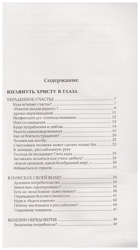 Книга представляет собой размышления клирика Александровской епархии Владимирской митрополии, врача по профессии, о том, что мешает обрести счастье в Боге и душевный мир, почему даже церковный человек часто не может относиться с любовью к своим ближним.