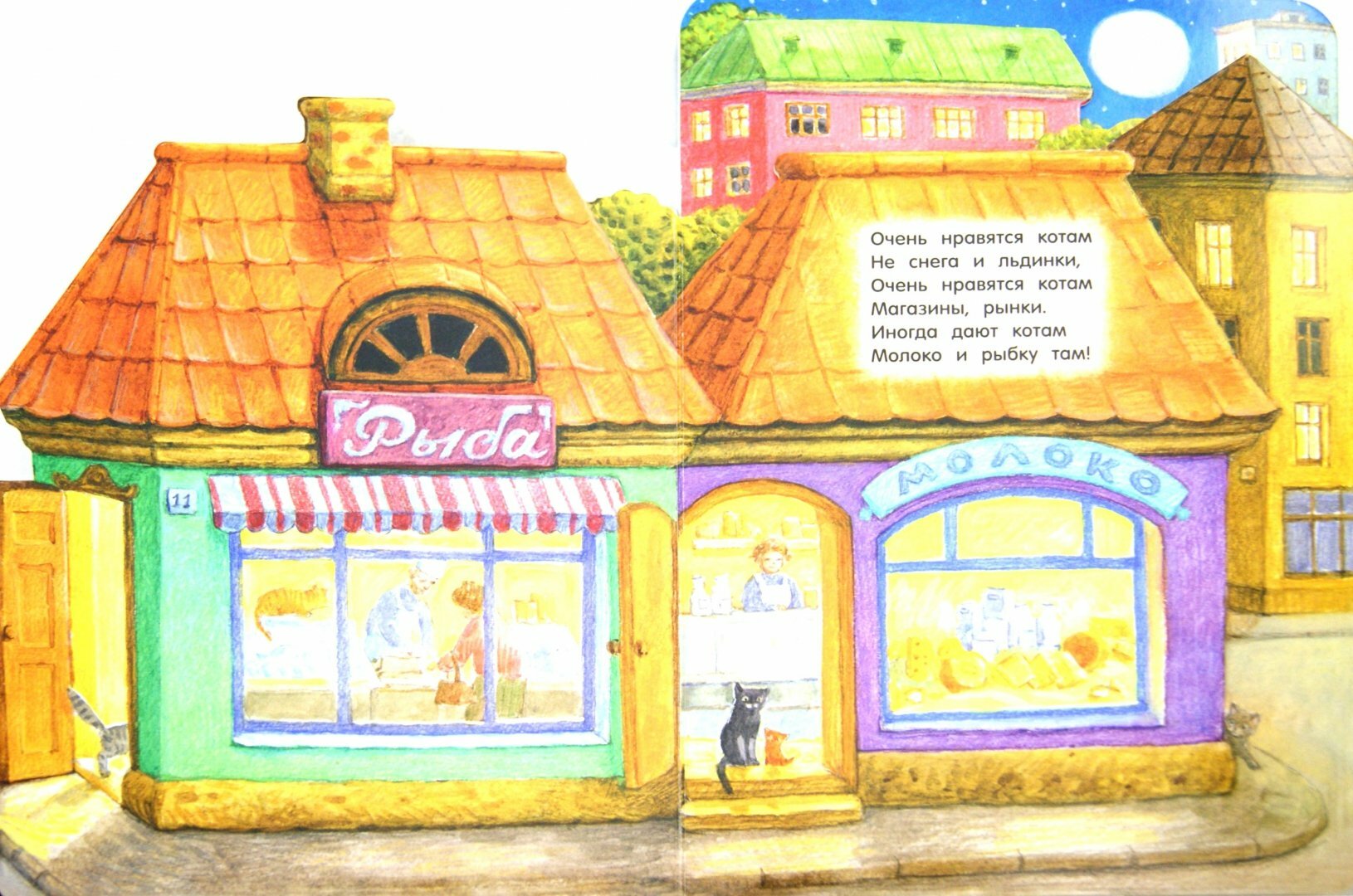 Самое главное - прямо с первого дня эта книга одна из самых любимых, просит читать и разглядывает каждый день, до сих пор не надоела! Особенно ему нравится разглядывать магазины и искать котиков на последнем развороте. -