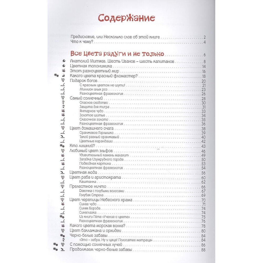 В этой книге нам с 10летней дочерью понравилось все: и содержание, и оформление. Впервые встречаю, чтобы автор с такого ракурса рассматривал цвет. Особо понравились "цветные фразеологизмы", "цветная топонимика". Очень интересно, увлекательно, необычно. Рекомендуем как полезную книгу для школьников
