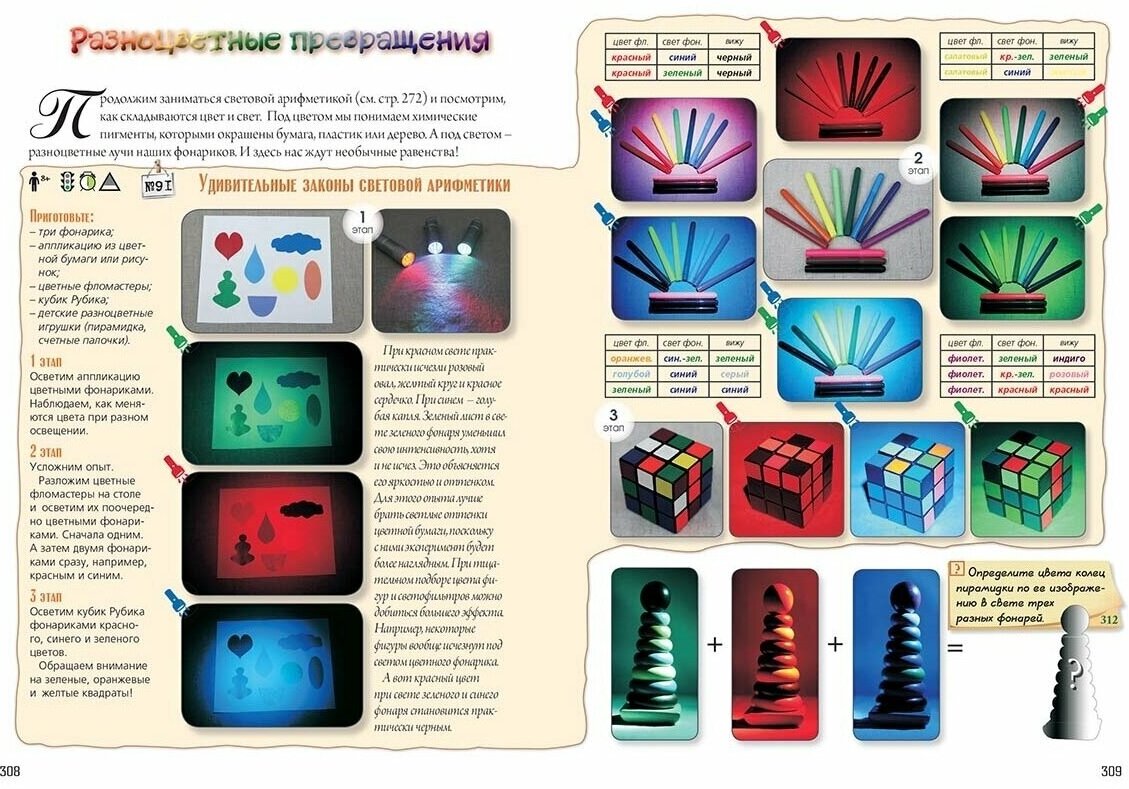 Книгу покупали для девятилетней любительницы рисовать, вникать в то, как образуется тот или иной цвет, пробовать и экспериментировать с красками, карандашами, мелками, стеклышками и т.д. Девочка осталась очень довольно. При ее достаточно холодном отношении к чтению с этой книгой она проводит достаточно много времени. Она читает и экспериментирует. Очень довольна и девочка и родители.