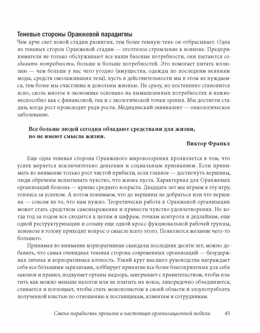 Мы стремимся к чему-то большему, к принципиально новым и лучшим способам организации совместной работы людей. Но действительно ли такое возможно или это просто несбыточные мечты? Если все-таки организации, способные более полно раскрывать потенциал человека, могут быть созданы, то как они должны выглядеть? Как вдохнуть в них жизнь? Вот вопросы, лежащие в основе этой книги.