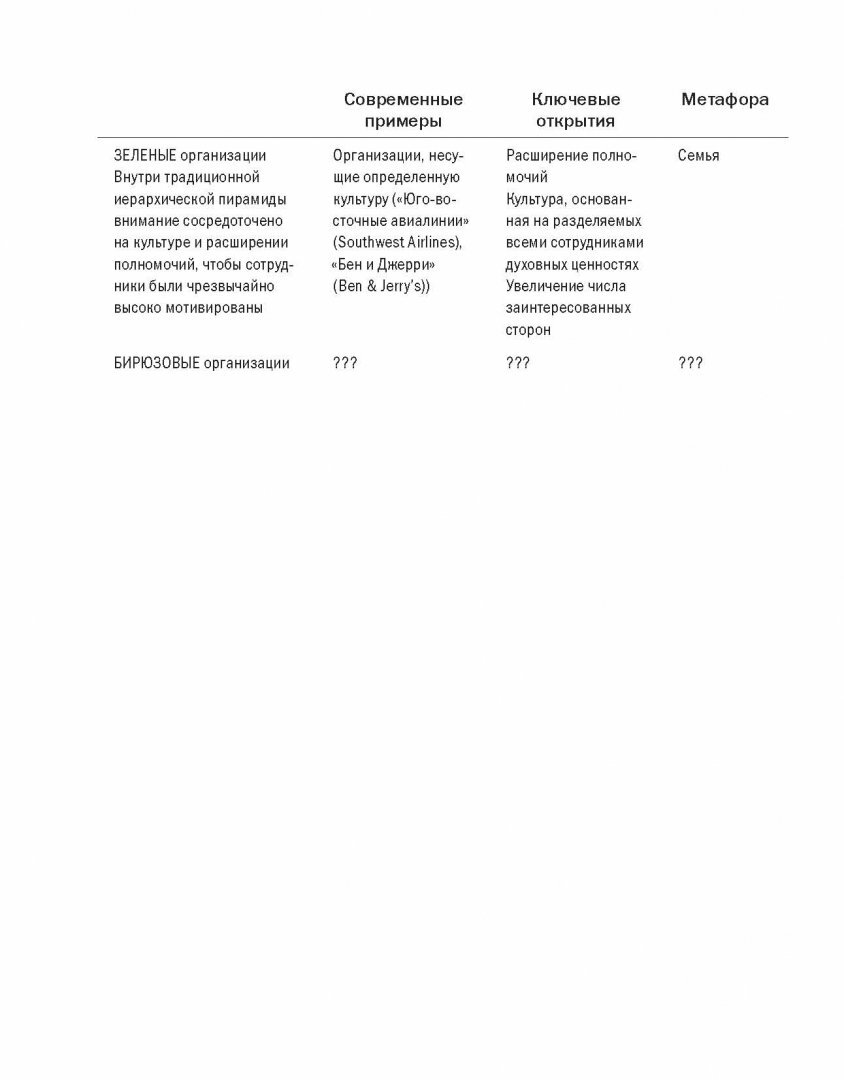 Можно ли решать эти вопросы без интриг и политиканства? Как проводить собрания так, чтобы они были продуктивными и поднимали настроение участникам? Как сделать так, чтобы на совещаниях мы высказывались искренне, а не были движимы лишь эгоистическими побуждениями? Как во всём, что мы делаем, руководствоваться важнейшей целью и при этом не давать волю цинизму, которым нередко грешат велеречивые "миссии" многих компаний? Нам не нужна некая великая концепция организации нового типа. Нам нужны конкретные ответы на множество возникающих вопросов.