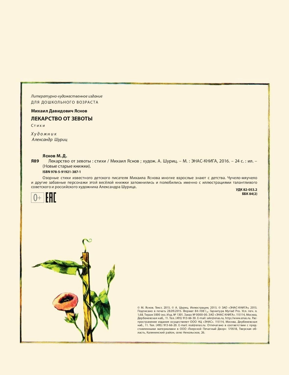 Книга: Лекарство от зевоты (Яснов Михаил Давидович); ЭНАС-КНИГА, 2016