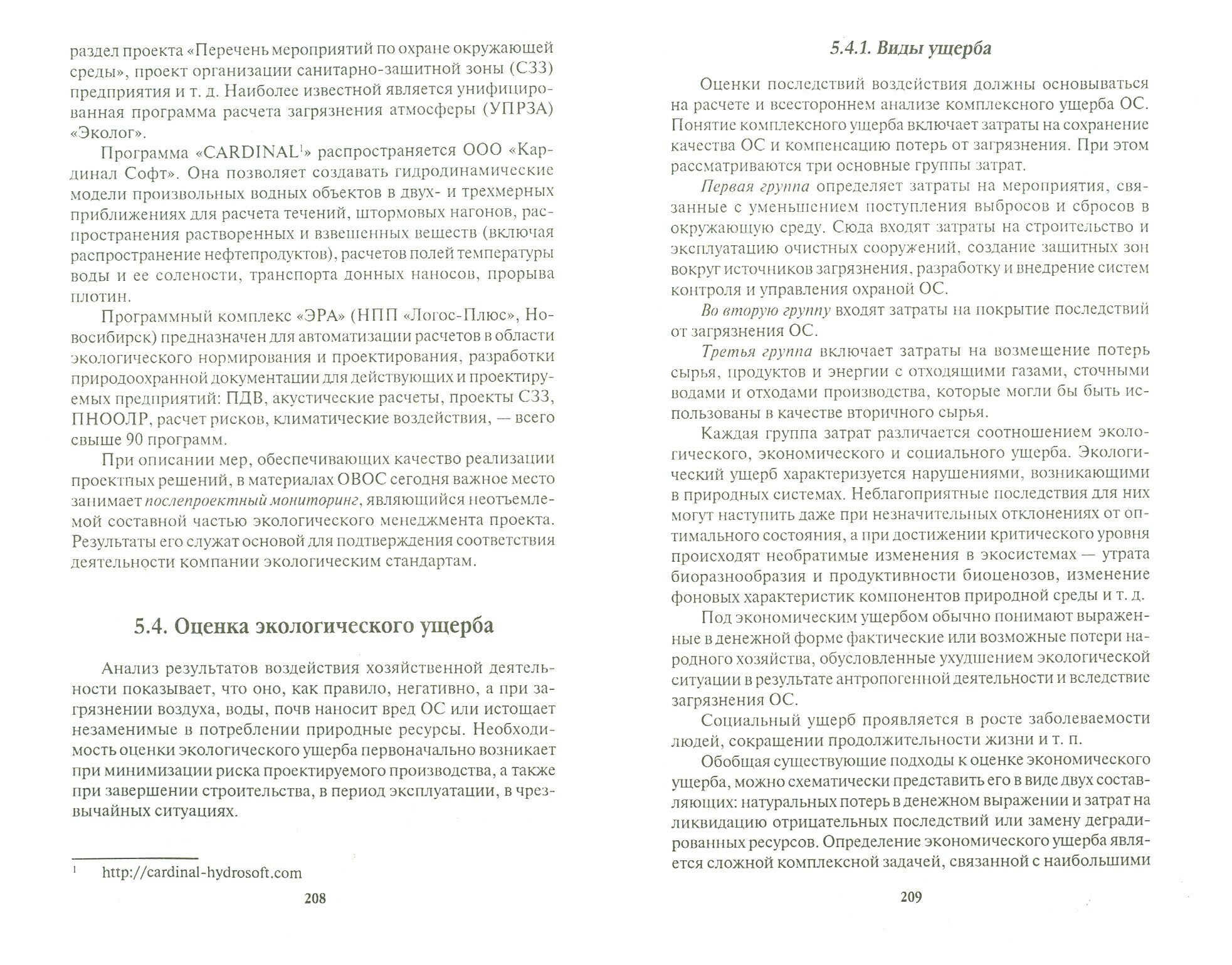Подробно изложена процедура экологической экспертизы и экологической оценки проектов в ходе всех видов экологических экспертиз планируемой хозяйственной деятельности в России, описаны методы и средства экологической экспертизы, критериальная база оценок воздействия и методика оценки интенсивности техногенных нагрузок на окружающую среду.