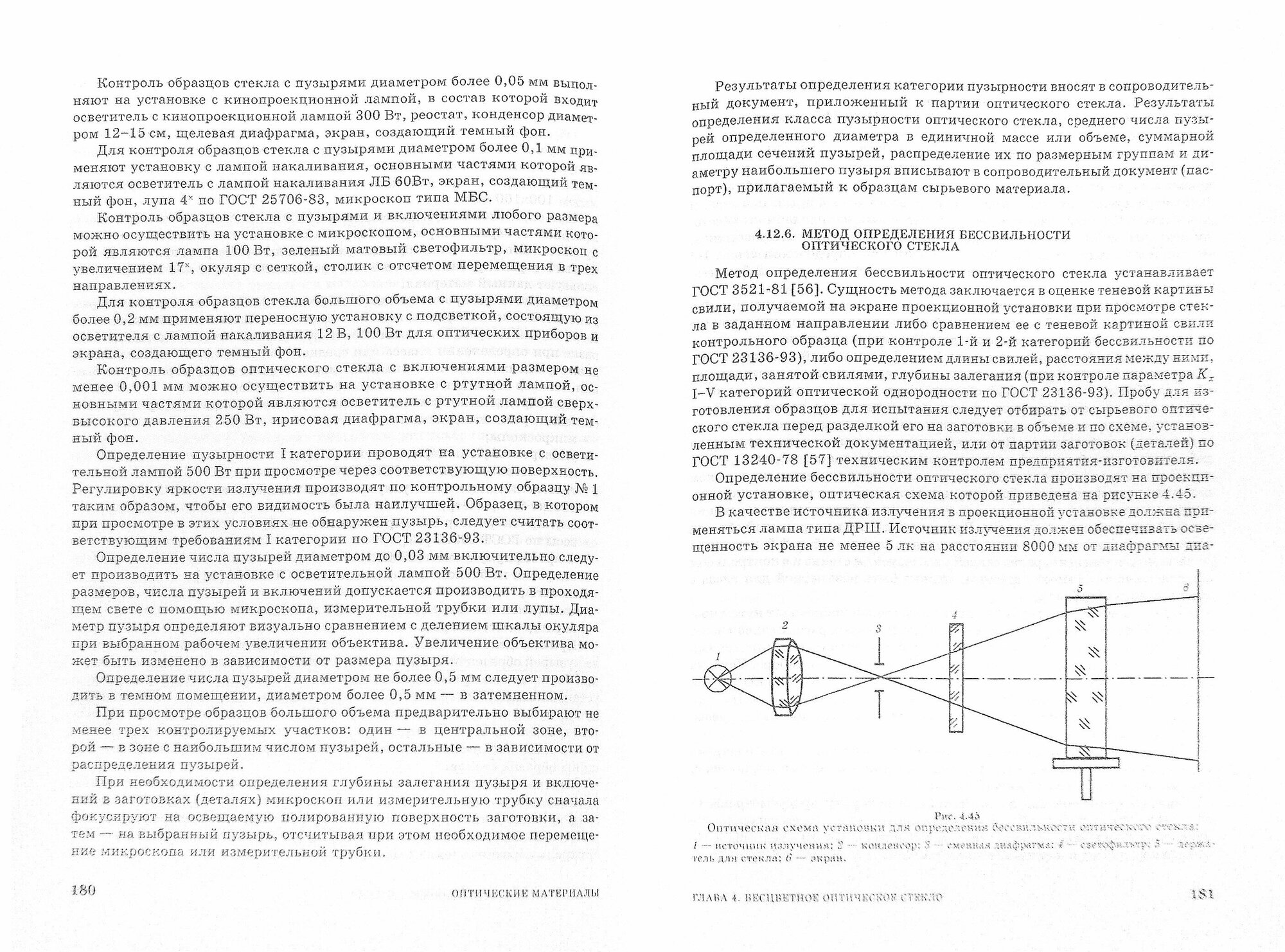 Понятие "оптические материалы" охватывает сегодня огромное множество оптических сред, различающихся не только показателем преломления и коэффициентом дисперсии, но и прозрачностью для электромагнитного излучения требуемого диапазона длин волн, физико-механическими и физико-химическими свойствами, требуемой воспроизводимостью оптических характеристик, необходимой оптической однородностью, бессвильностью и т.д. Дано представление о том, что такое стекло, описаны характерные особенности его производства, кратко изложена история зарождения стекловарения и стеклоделия. Рассмотрены физические и физико-механические свойства оптического стекла как конструкционного материала оптических систем оптико-электронных приборов. Рассмотрено влияние параметров оптического стекла на габаритные и аберрационные характеристики разрабатываемых оптических систем. Дано описание показателей качества оптического стекла и их нормирования. Рассмотрены методы определения требований к качеству оптического стекла. Описаны методы контроля и измерения характеристик качества оптического стекла.