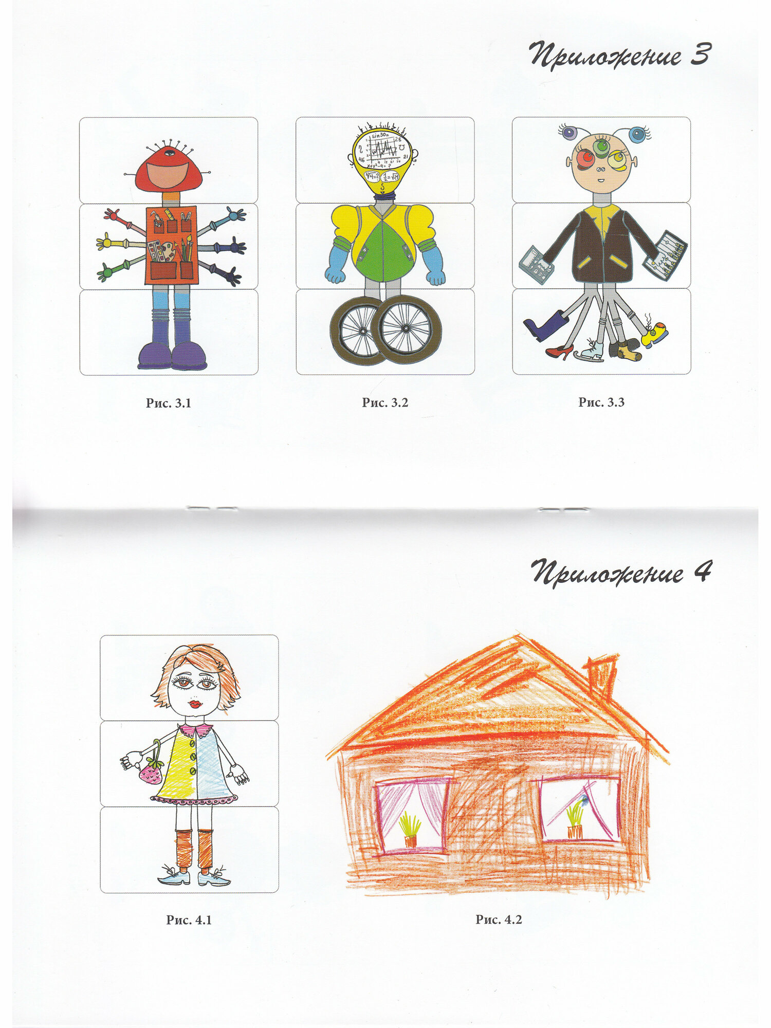 .Именно этим обоснован выбор "главного персонажа" комплекта, и этим же объясняется интерес детей разного возраста к работе с материалами. Все это задает содержательное поле для психологической работы: комплект "Роботы" позволяет работать с внутренними конфликтами, с образом себя в целом и образом тела в частности, с представлениями о близких и об отношениях с ними.