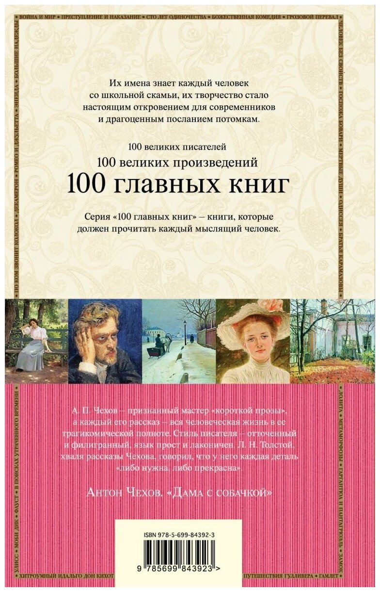Искала недорогое издание Чехова не менее 400 страниц в твердой обложке, чтобы заменить порванную маленьким ребенком библиотечную книгу. Остановилась на этом варианте. Осталась полностью удовлетворена. Книгу приятно держать в руках, приятно читать. Хорошая бумага, отличная подборка произведений. Очень жаль, что пришлось с ней расстаться.