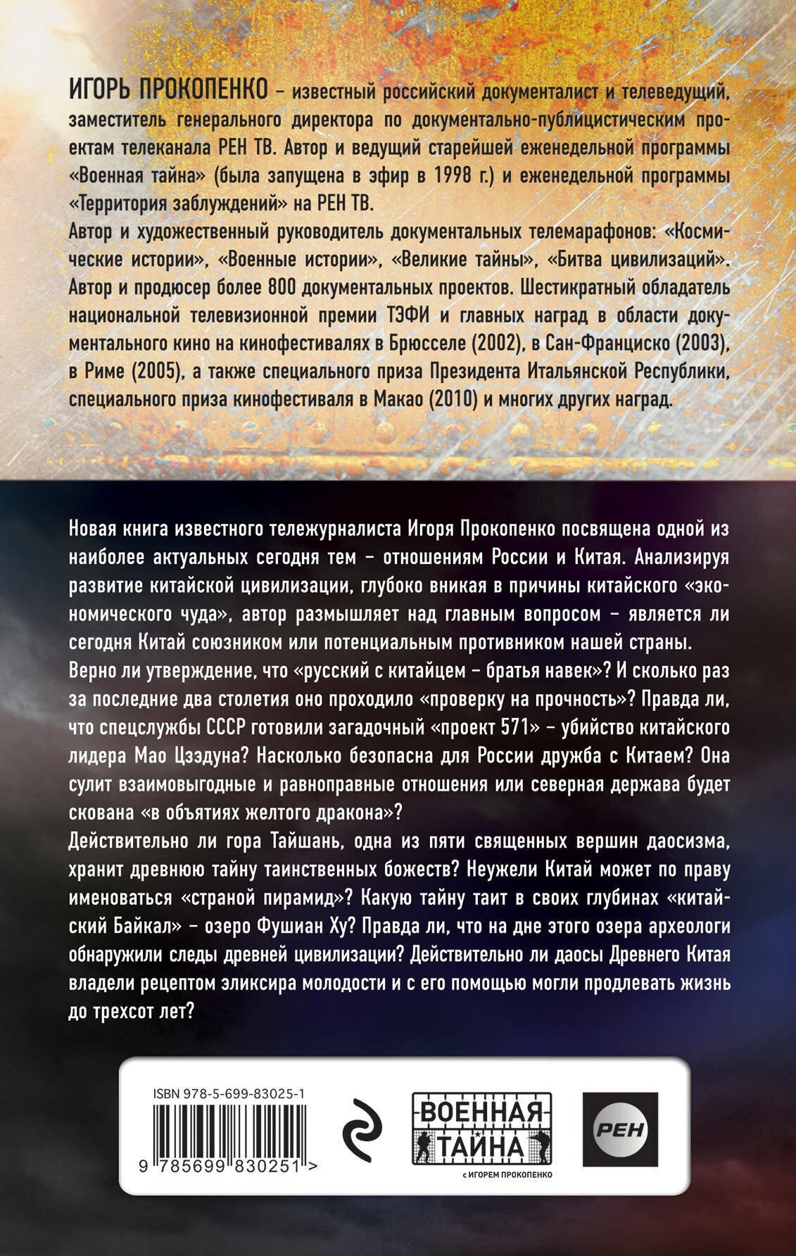 Новая книга известного тележурналиста Игоря Прокопенко посвящена одной из наиболее актуальных сегодня тем - отношениям России и Китая. Анализируя развитие китайской цивилизации, глубоко вникая в причины китайского "экономического чуда", автор размышляет над главным вопросом - является ли сегодня Китай союзником или потенциальным противником нашей страны.