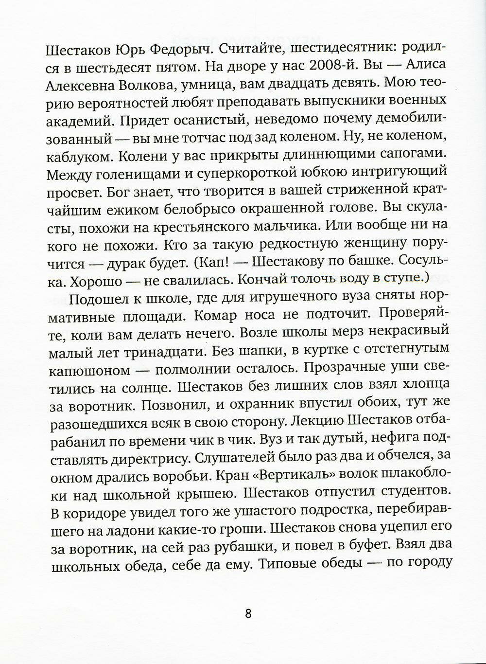 «Лесков писал как есть, я же всегда привру. В семье мне дают сорок процентов веры. Присочиняю более половины. Оттого и речь завожу издалека. Не взыщите», — доверительно сообщает нам автор этой книги. И мы наблюдаем, как перед нами разворачиваются «присочиненные» истории из жизни обычных людей. И уводят — в сказку? в фантасмагорию? Ответ такой: «Притихли березовые перелески, стоят не шелохнутся. Присмирели черти под лестницей, того гляди перекрестят поганые рыла. В России живем. Святое с дьявольским сплелось — не разъять».