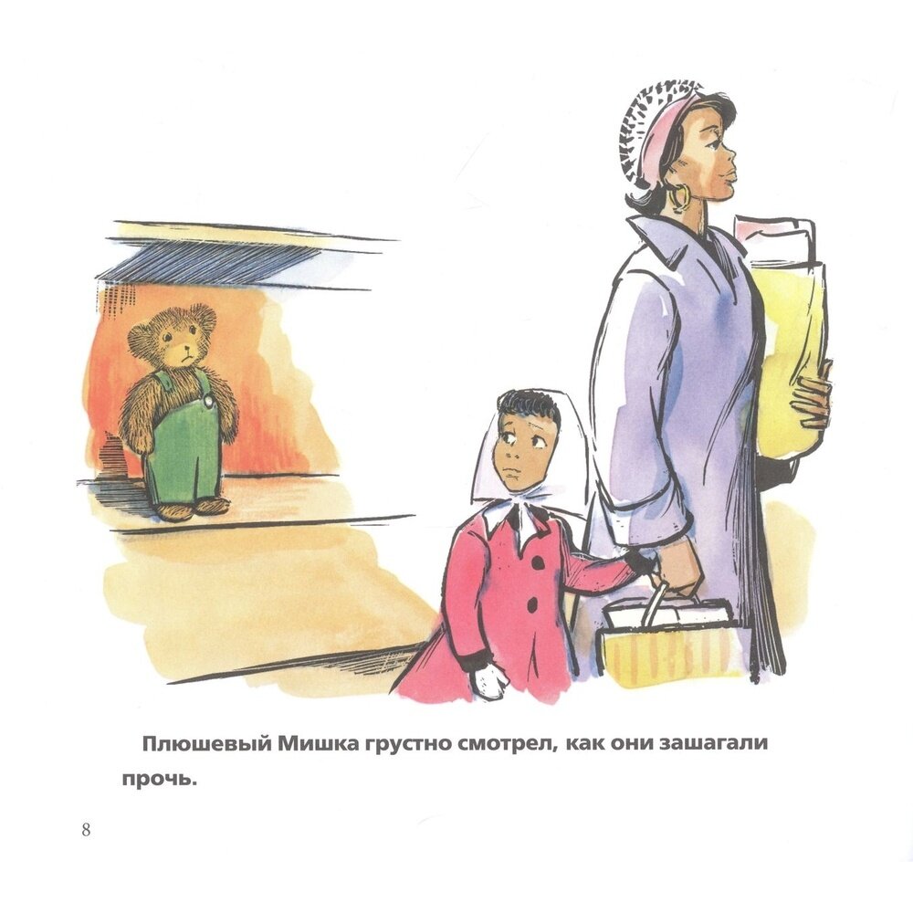 "Плюшевый Мишка" (он же Corduroy ) Дона Фримана – невероятно трогательная, искренняя, очень теплая и добрая история, которая берет за душу, история о большом детском сердце, о любви, нежности, дружбе и сбывшихся мечтах. История о маленьком Плюшевом Медвежонке, затерявшемся среди других игрушек в огромном магазине, который мечтает, чтобы его купили, мечтает о друге и доме. Он очень долго ждет, чтобы кто-нибудь его купил, так долго, что даже штанишки поистрепались и пуговица оторвалась. Вот однажды он встречает Лизу: милую маленькую девочку, которая мечтает о Плюшевом Мишке и, несмотря на то, что мама отказалась ей его купить, девочка осуществила свою мечту: Лиза вернулась на следующее утро в магазин и купила Мишку на все свои сбережения.