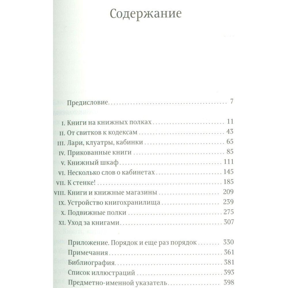 Тема, которую исследует автор, - книги и книжные полки. Он задается вопросом: так ли очевидно и неизбежно современное положение вещей, когда книги стоят вертикально на горизонтальных полках? Читатели проследят, как свиток времен Античности превращается в кодекс, а тот, в свою очередь, - в книгу, к которой мы привыкли, и узнают, как в разные времена решалась задача хранения книжных собраний. Это щедро проиллюстрированная и увлекательно написанная книга о книге - о том, как она появилась на свет и как мы научились хранить ее.