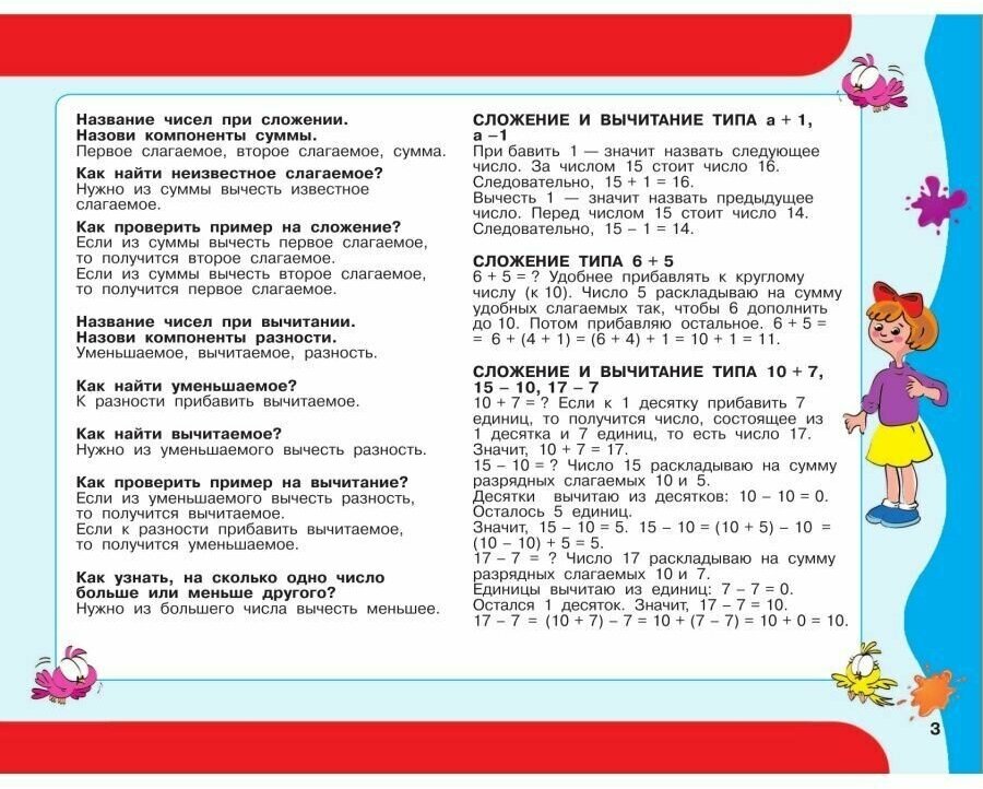 Но в добавок к примерам есть яркие иллюстрации, на каждой страничке дети и веселые комментарии разряжающие обстановку, милые рисунки. Они не отвлекают от примеров (рисунки вне столбиков, отдельно) но создают атмосферу приятную и решать веселее. -