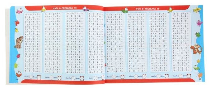 Книжка очень понравилась. В лучших традициях авторов очень много примеров на отработку вычислительных навыков (при этом засекая время), начиная со счёта в пределах 5, потом переход к счету в пределах десятка и в конце уже счет в пределах 20 и разные примеры на необычные способы вычисления.