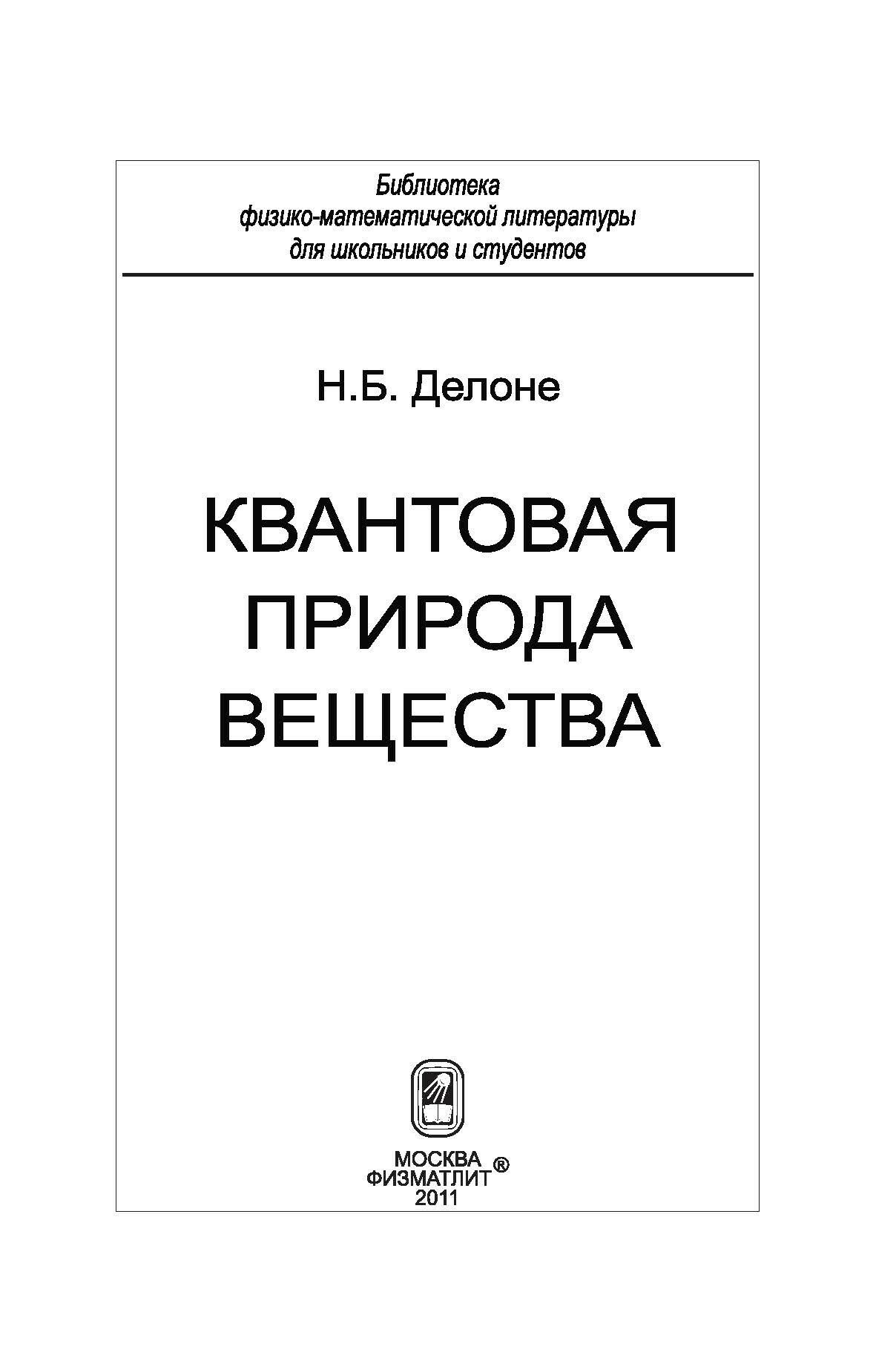 Квантовая природа вещества (Николай Делоне); Издательская фирма "Физико-математическая литература", 2008