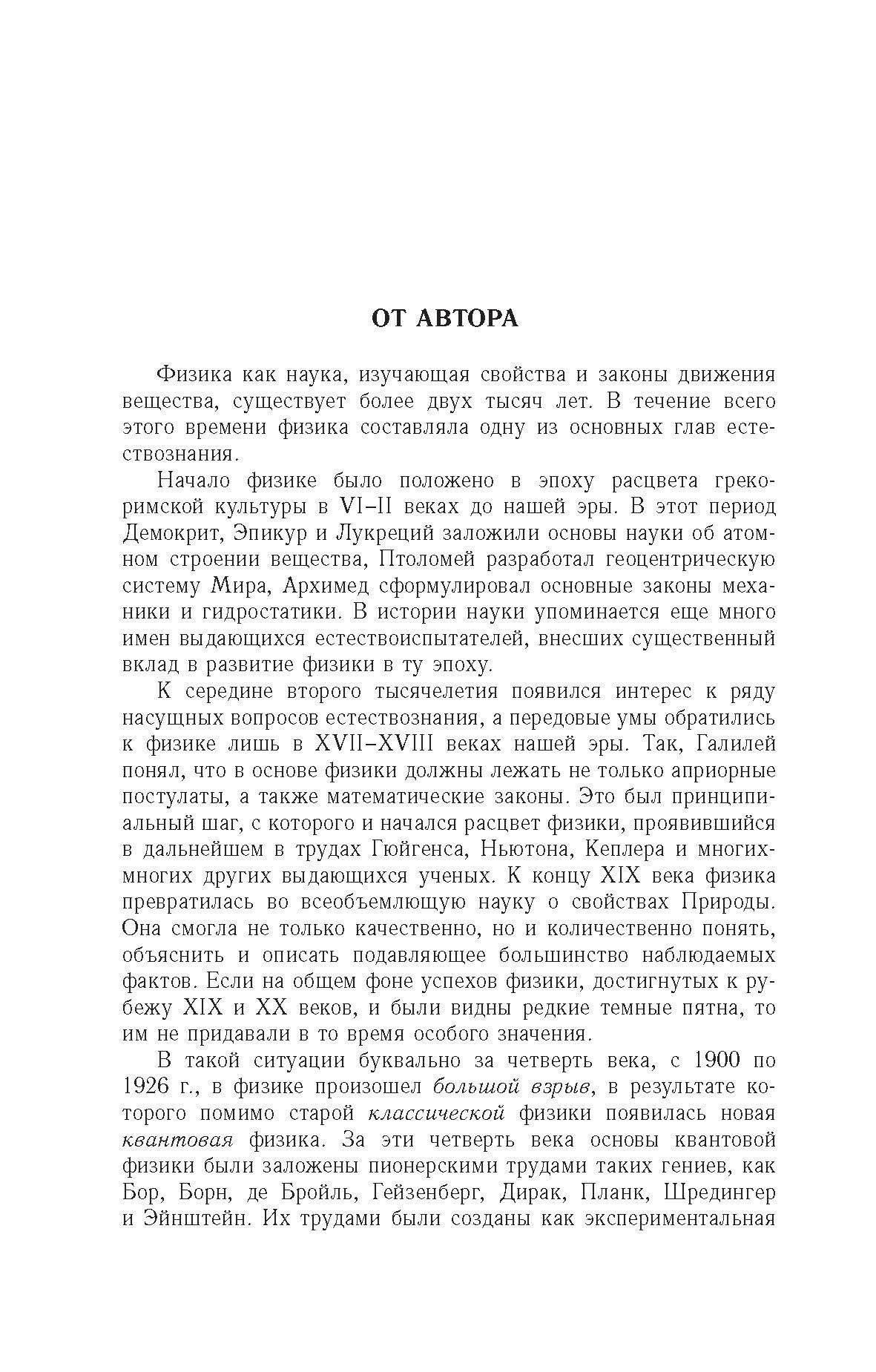 Сейчас, в начале XXI века, квантовая физика доминирует среди других разделов физики по значению получаемых новых результатов как для науки в целом, так и для современных техники и технологий. Поэтому ознакомление с основами квантовой физики необходимо любому молодому человеку, оканчивающему среднюю школу, или начинающему студенту, если он собирается посвятить свою жизнь физике, астрофизике, химии, электронике или современной технике.
