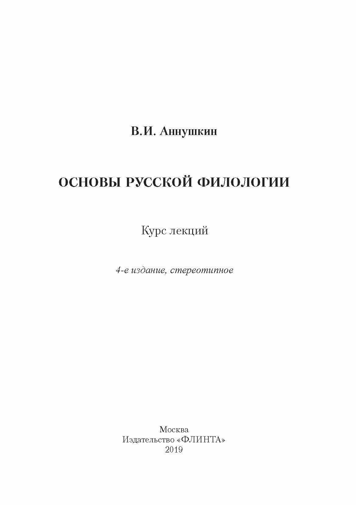 Основы русской филологии: курс лекций (Владимир Иванович Аннушкин); Флинта, 2018