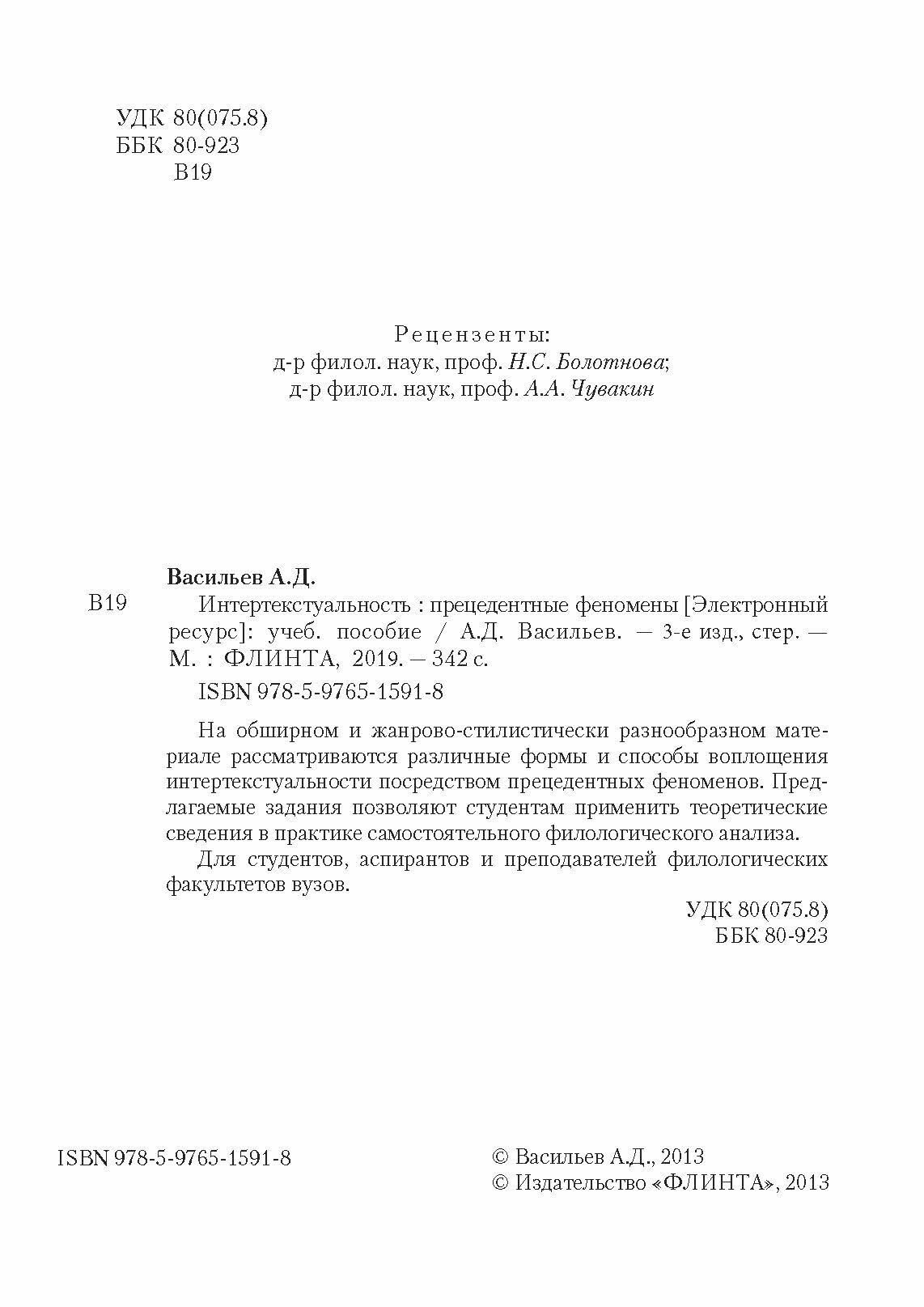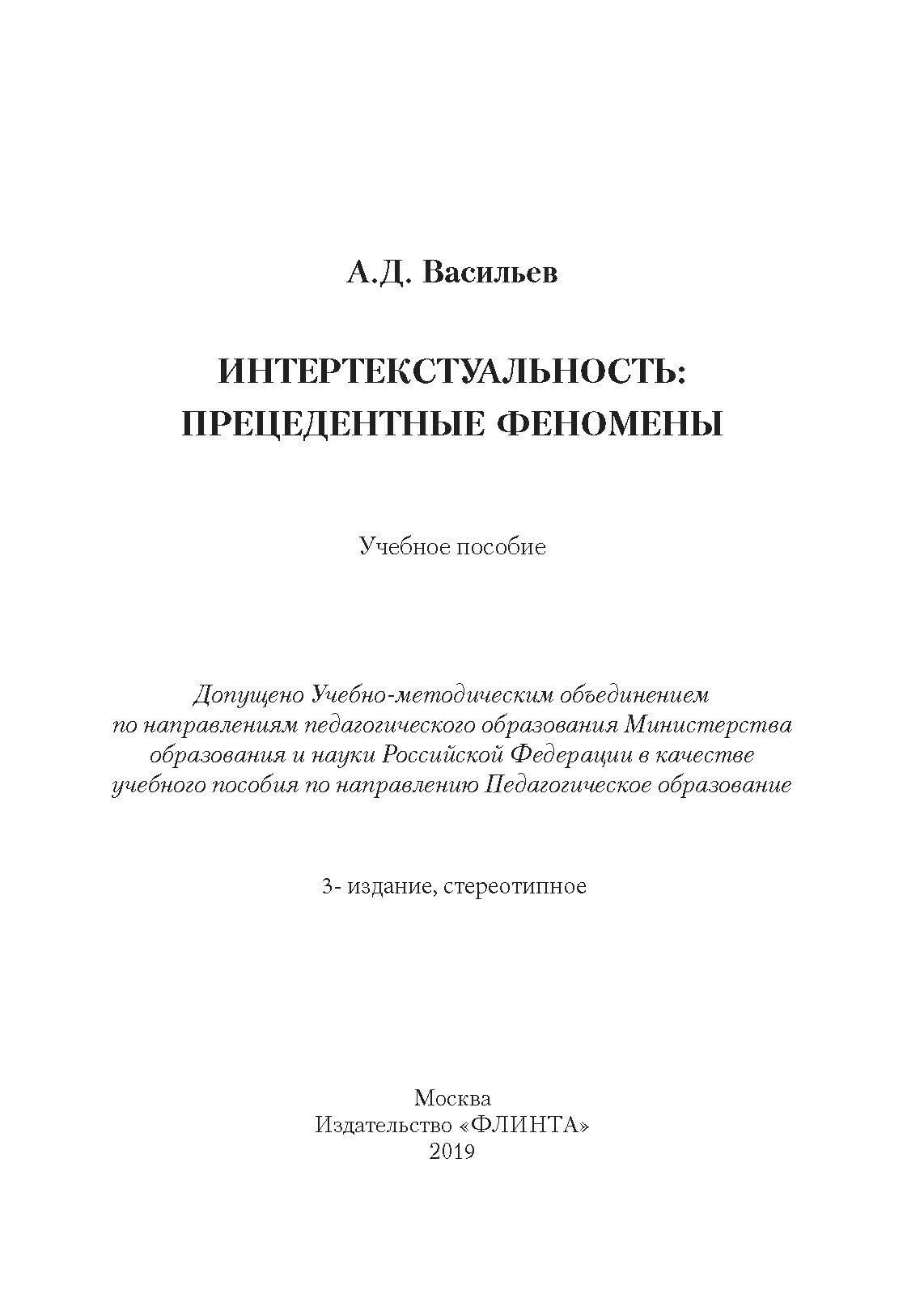 Интертекстуальность: прецедентные феномены. Учебное пособие (Васильев Александр Дмитриевич); Флинта, 2015
